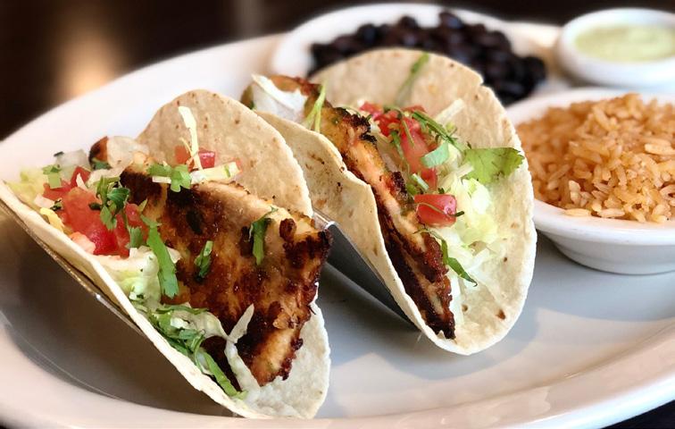 Three small corn tortillas stuffed with your choice of steak, grilled chicken or pork adobada with grilled onions, jalapeños and radishes. Garnished with onion and cilantro. Served with rice and beans. 16.99