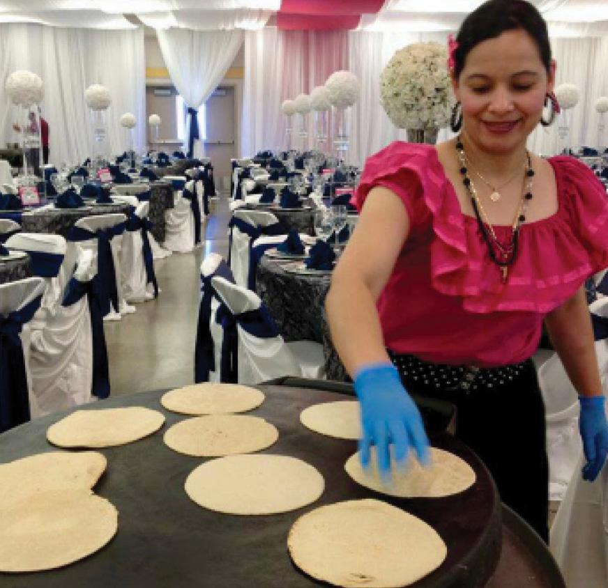 Two blended flour/corn tortillas packed with marinated and sautéed shrimp and tomatoes. Topped with lettuce and cilantro. Served with rice and beans. 18.99
