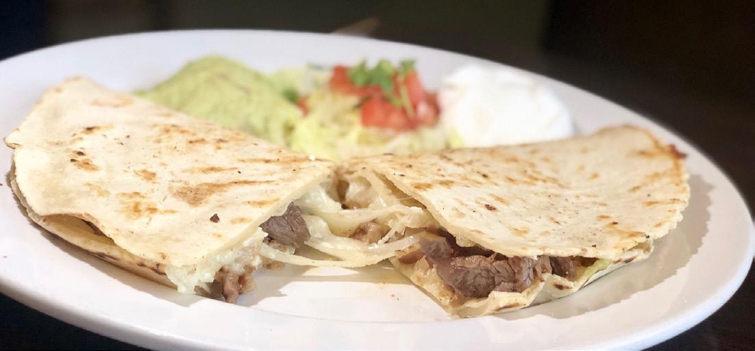 Super sized flour tortilla filled with melted cheddar jack cheese and your choice of chicken or beef . Topped with diced tomatoes and lightly sprinkled with cotija cheese. Sour cream and guacamole upon request. 14.59 Substitute steak for 3