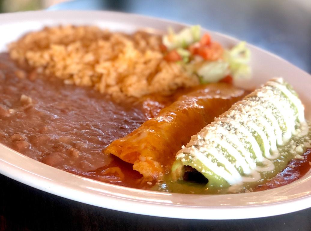 Traditional Mexican “style” enchiladas dipped in mild rojo sauce, with chicken or beef , sprinkled with cotija cheese. 17.99