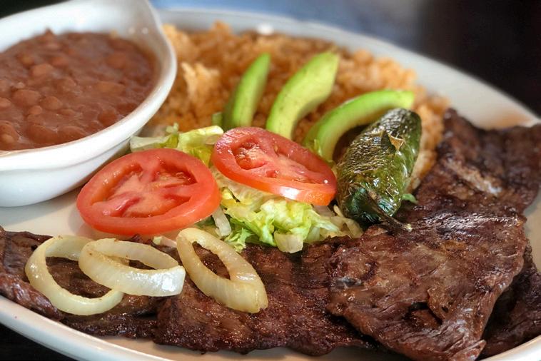 Charbroiled Certified Angus Beef® steak, slices of avocados, onions, and fried jalapeño. Served with rice and beans. 26.99