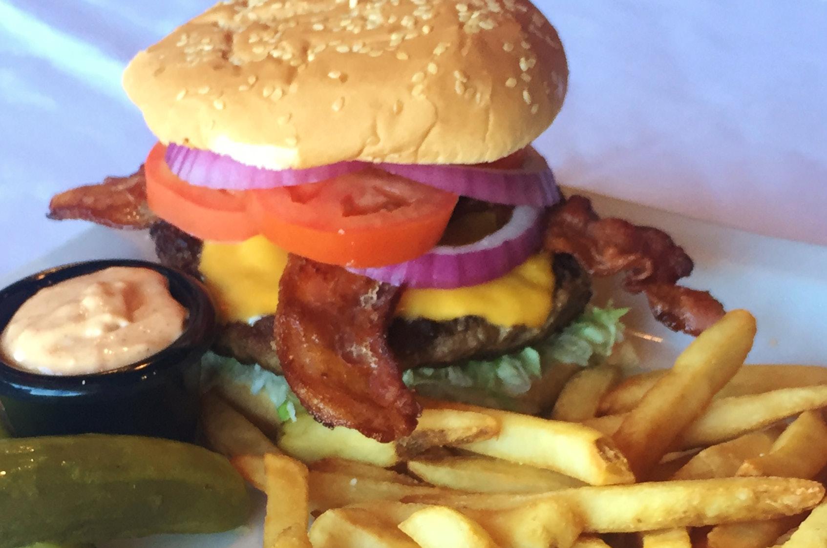 1/2 lb. Certified Angus Beef ® patty ready to eat with lettuce, tomato, red onion and mayo. Served with fries, fry sauce and pickles. 14.99 burger add-ons: Cheese 1.39 | Bacon 2 | Fresh Guacamole 2