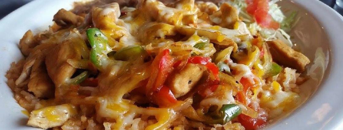 Arroz con Pollo Traditional Mexican ”Chicken and Rice” pieces of chicken breast served with sautéed mushrooms, onions, bell peppers and cheese served over rice and side beans. 18.99
