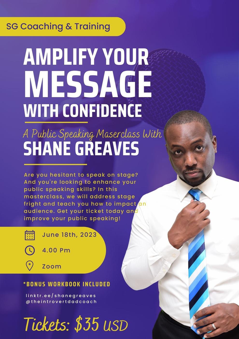I'd like to invite everyone to join me in my upcoming "Amplify Your Message with Confidence" Masterclass on July 10, 2023 This masterclass is specifically designed for the nervous but will help any public speaker improve their speaking skills. I overcame being an introvert to become a preacher, public speaker, and podcaster who is able to speak on virtual and in-person stages with impact and I am sharing the skills I learned.