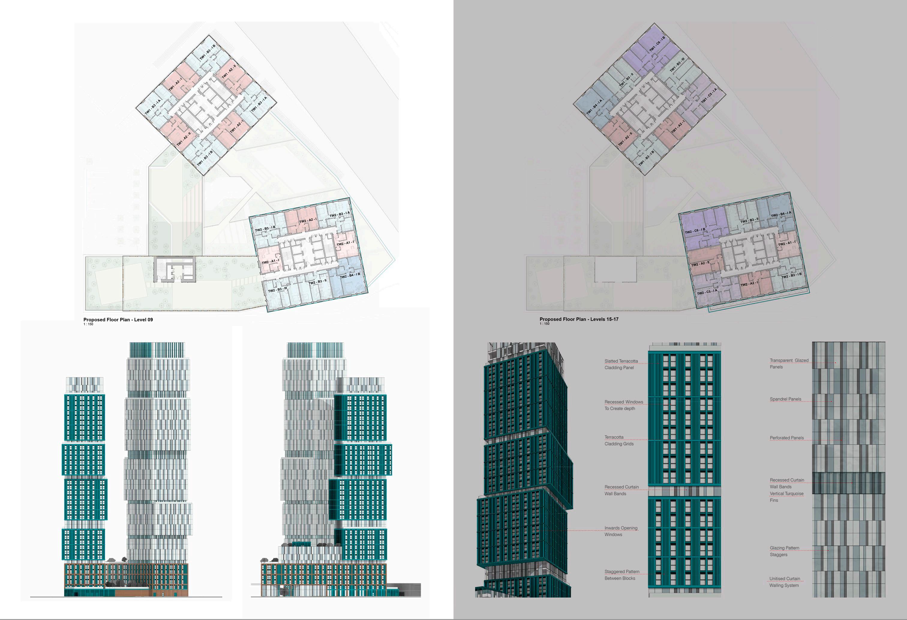 | 35 R E S I D E N T I A L S C H E M E - 4 3 & 4 9 S T O R E Y T O W E R S _ L E E D S B R E W S T E R B Y E A R C H I T E C T S _ 2 0 2 4 _PROPOSED ELEVATIONS PROPOSED TOWER’S MATERIALITY DESCRIPTION _PROPOSED GA FLOOR PLAN LEVEL 18 _PROPOSED GA FLOOR PLAN LEVEL 09