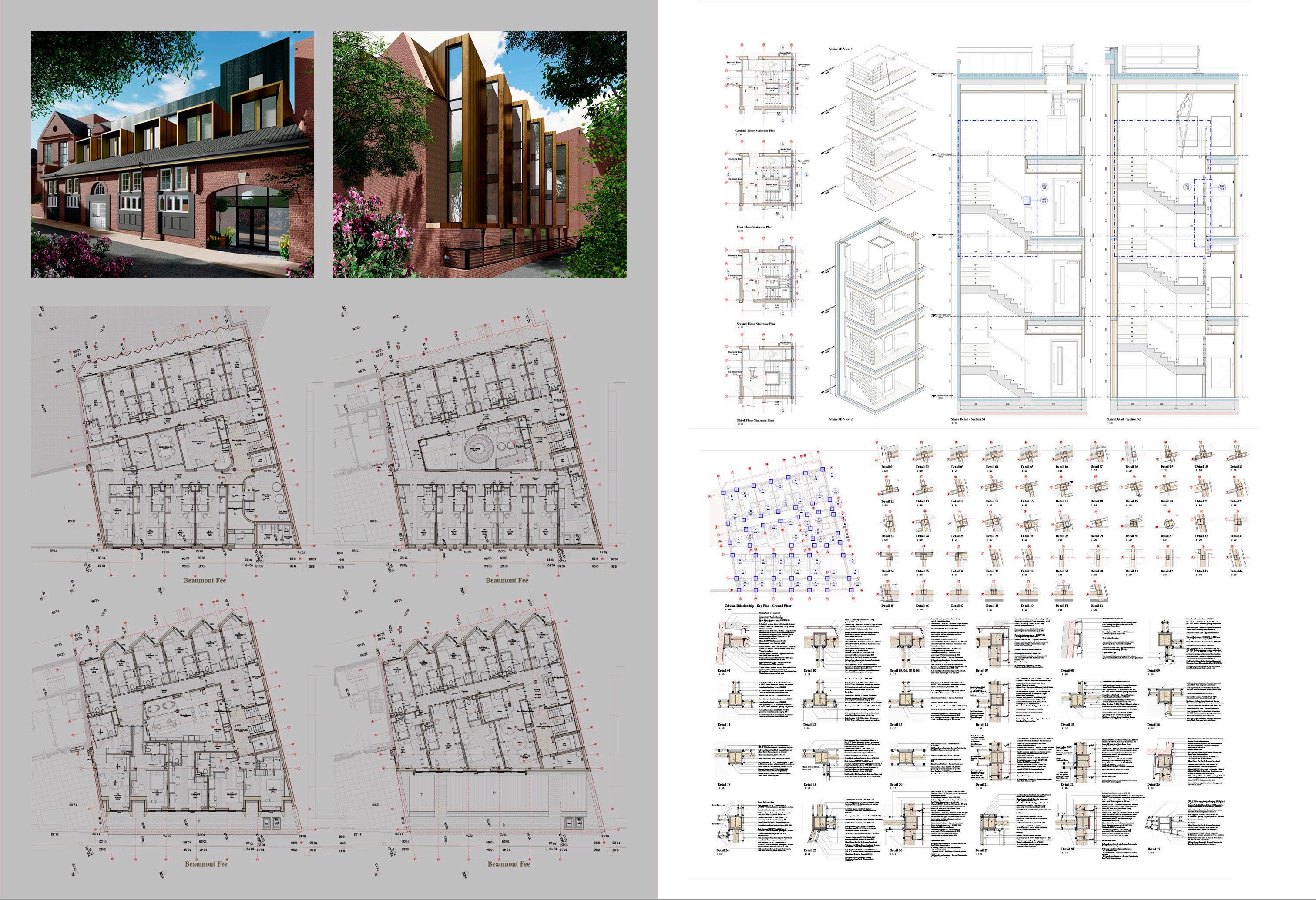 28 | B R E W S T E R B Y E A R C H I T E C T S _ 2 0 2 3 O F F I C E T O S T U D E N T A C C O M M O D A T I O N C O N V E R S I O N _ L E I C E S T E R _PROPOSED GA FLOOR PLAN - LEVELS 01 - 02 _PROPOSED FRONT ELEVATION RENDER 2