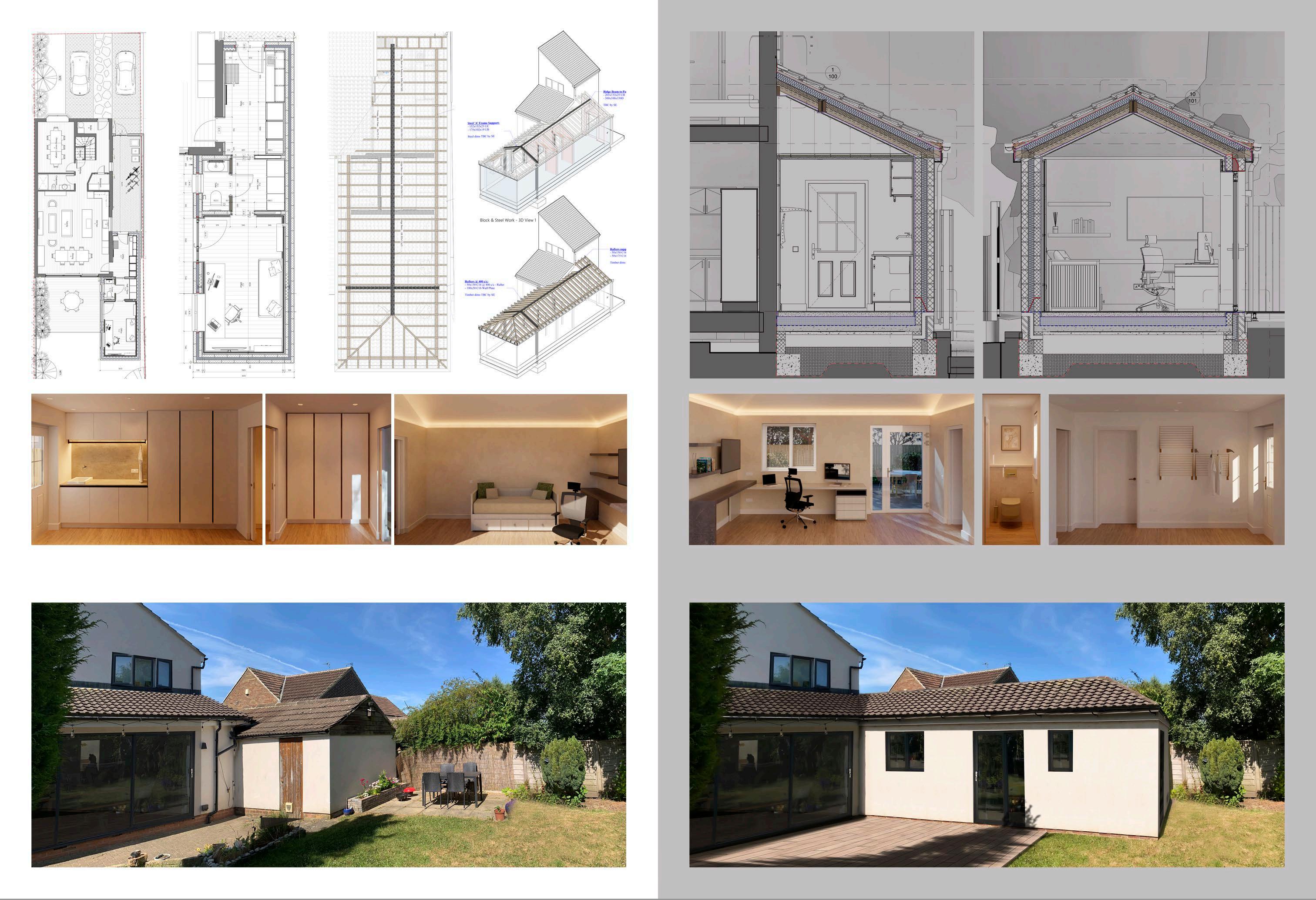 | 37 S I N G L E S T O R E Y S I D E & R E A R E X T E N S I O N _ A L W O O D L E Y , L E E D S A M A R C H I T E C T S _ 2 0 2 2 / 2 0 2 3 _EXISTING REAR GARDEN PHOTO _PROPOSED REAR GARDEN RENDER IMAGE _PROPOSED UTILITY’S CGI _REAR EXTENSION SECTION DETAIL _EXISTING & PROPOSED GA GROUND FLOOR PLAN _PROPOSED STRUCTURE PLAN & 3D VIEW _STORAGE’S CGI _PROPOSED REST-ROOM’S CGI _SIDE EXTENSION SECTION DETAIL _PROPOSED OFFICE’S CGI _WC’S CGI _PROPOSED UTILITY’S CGI