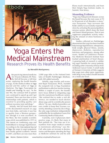 Yoga Enters the Medical Mainstream Research Proves its Health Benefits by Meredith Montgomery
