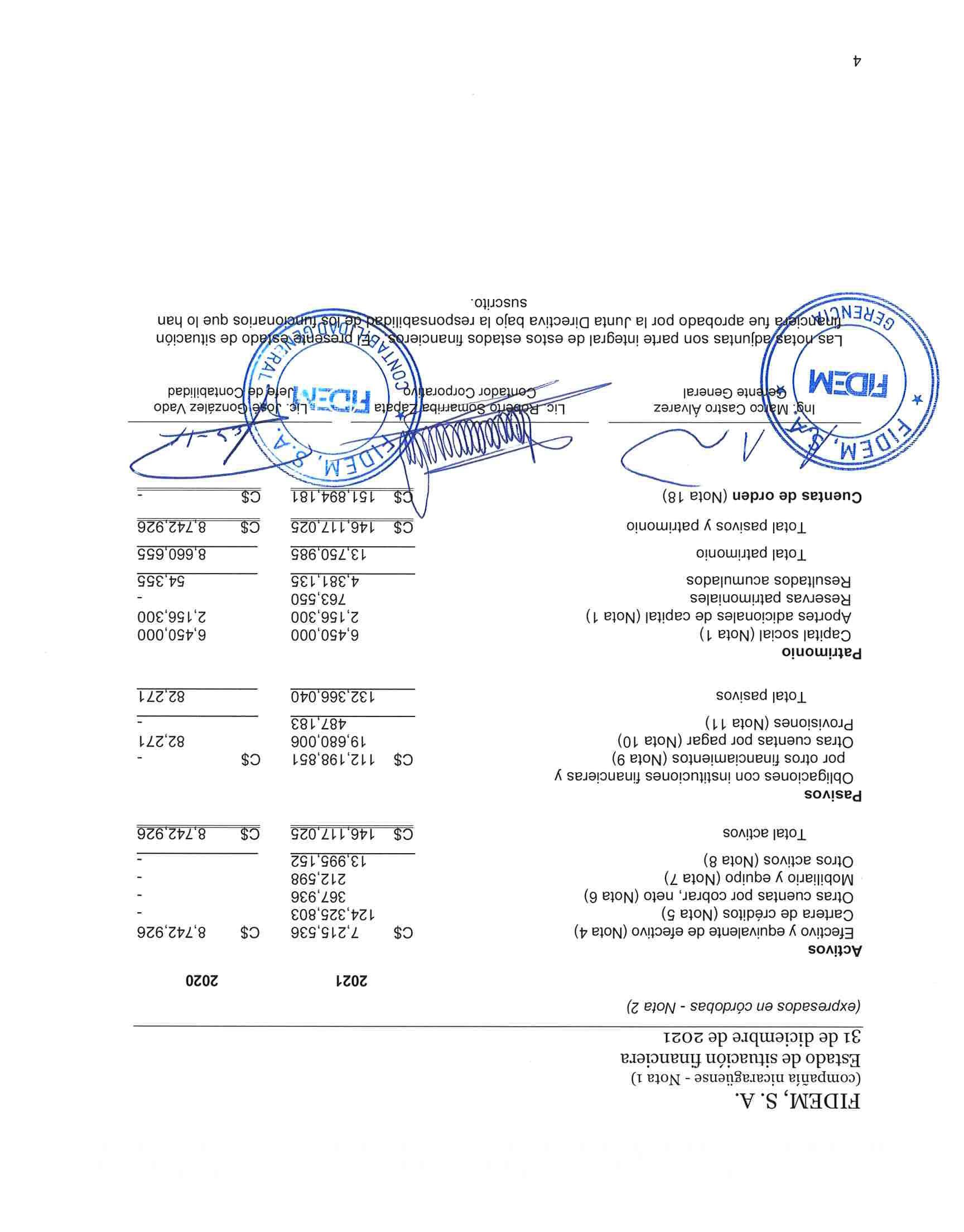 • El estado de situación financiera al 31 de diciembre de 2021;