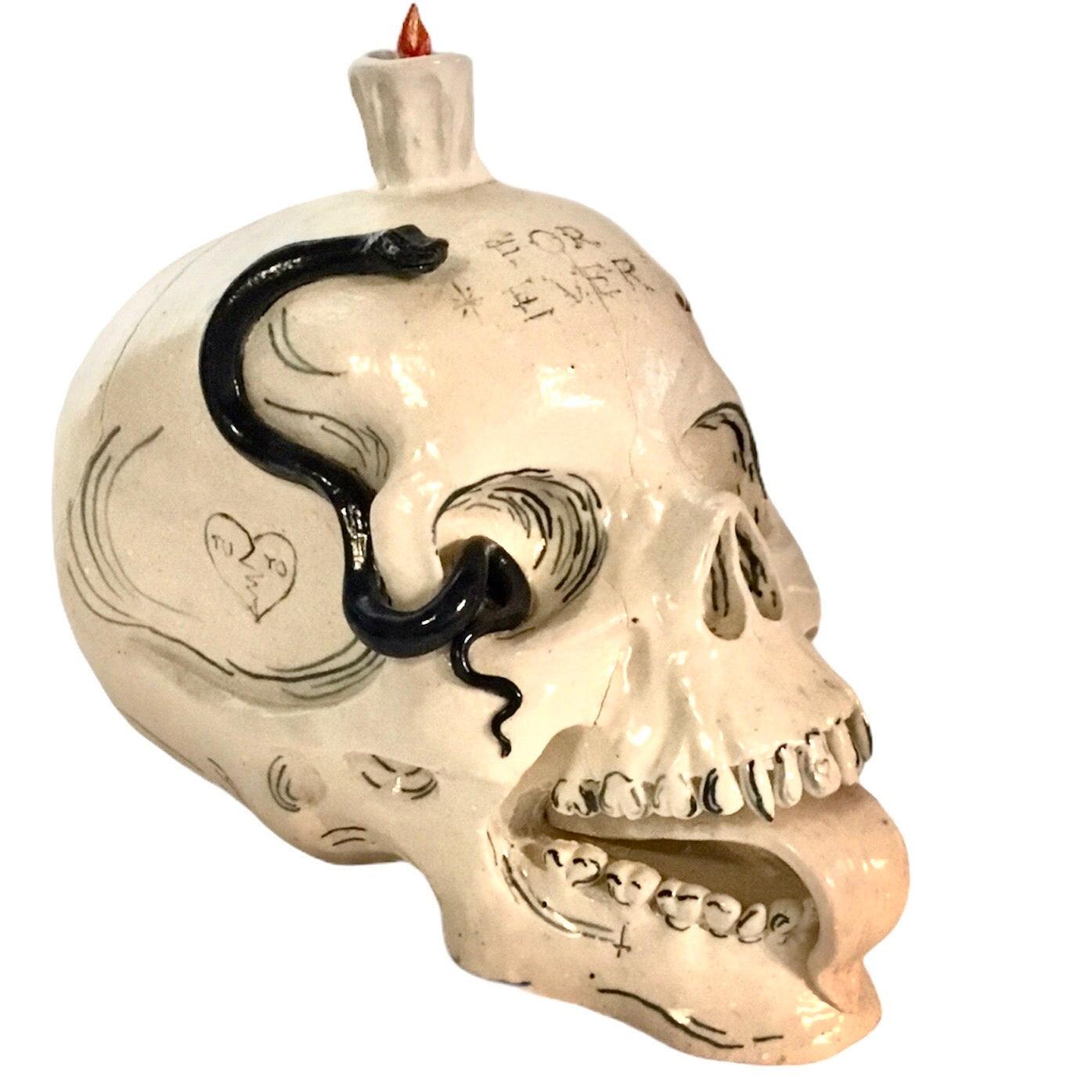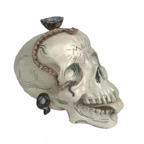 Skull with Brown Snake and Cup Oaxaca, Mexico