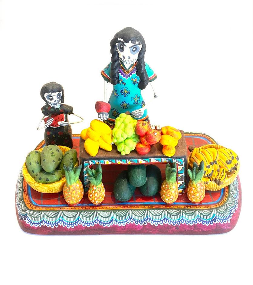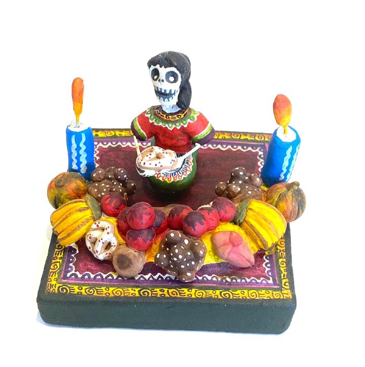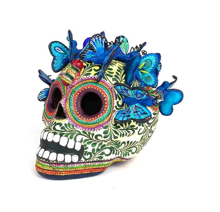 Alfonso Castillo Hernandez and his family come from a long line of Puebla potters with more than 250 years of tradition. The family is renowned for its creation of elaborate Arbol de la Vida (Tree of Life) sculptures. Their family’s Trees of Life have been exhibited in Germany, Austria, Spain, and the United States. Alfonso also creates various themed works for Dia de los Muertos including decorated skulls and catrinas.