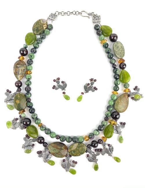 Jadeite, Amber, Garnet and Silver 0.925. Price: $1,000
