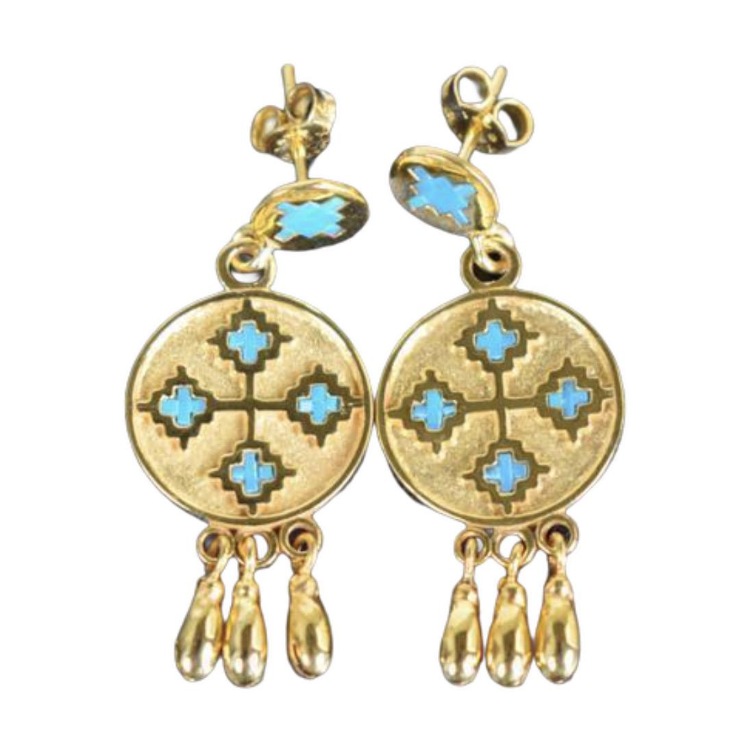 Weight: 6 grams approx Gold 14k and Turquoise. Size: 1 1/2 in. Price: $750