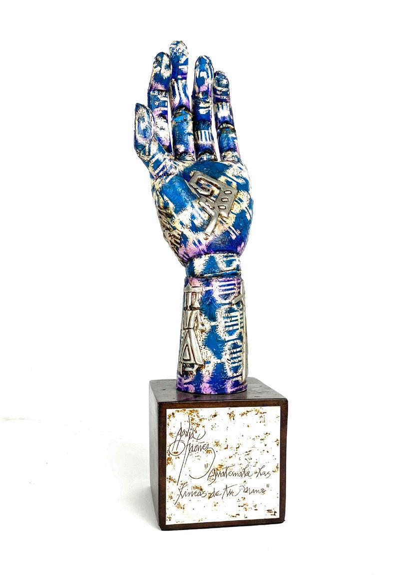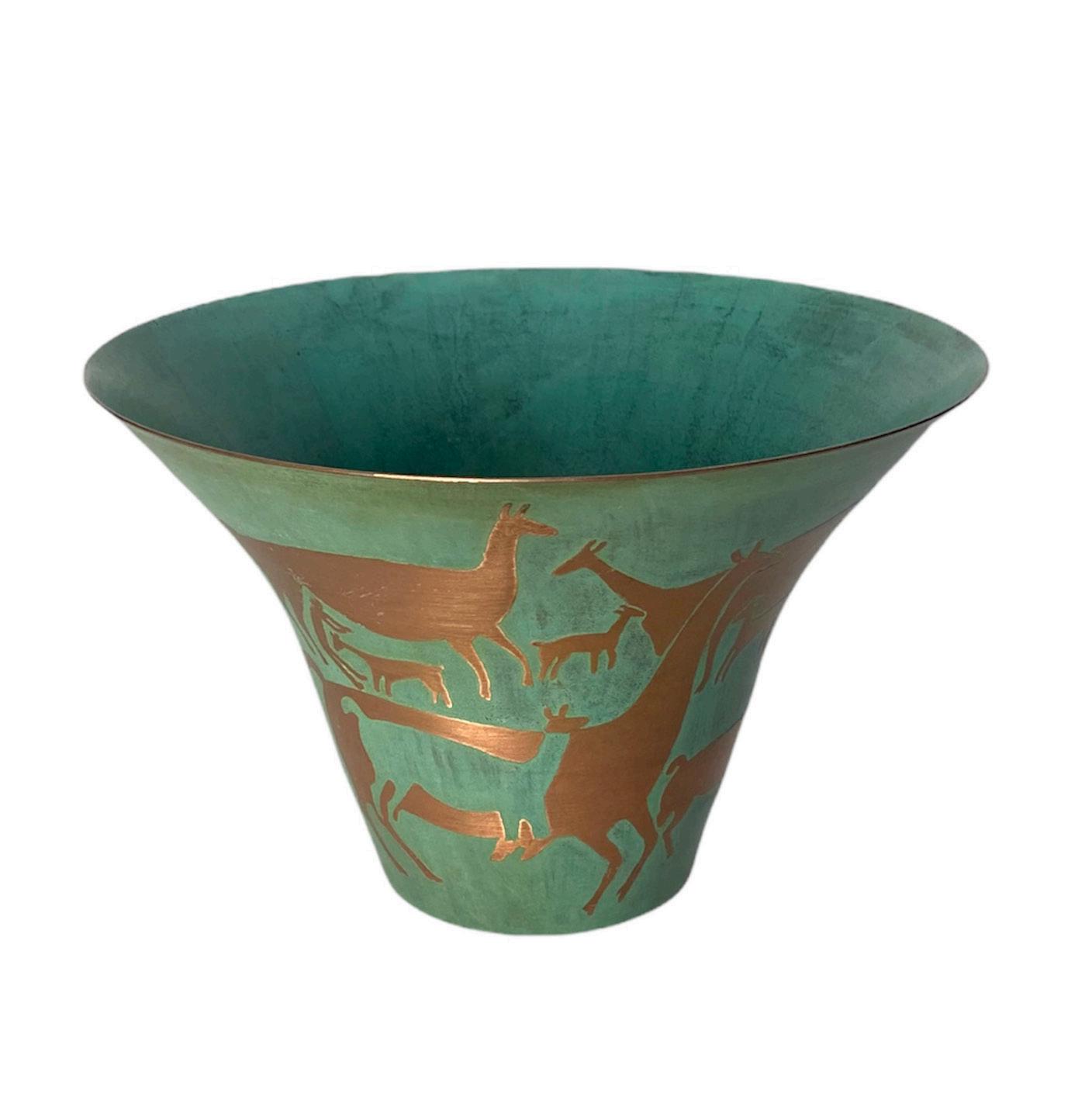 Eduardo’s pieces are influenced by cave paintings found in Chile and by pre-columbian cultures from Latin America. He is also known for using the patina oxidation technique that gives his pieces a vibrant green color. Reyes has been working for more than 20 years in the Region of Los Lagos.