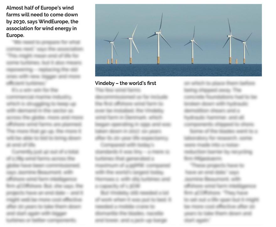 But Vindeby still needed a lot of work when it was put to bed. It needed a mobile crane to dismantle the blades, nacelle and tower, and a jack-up barge