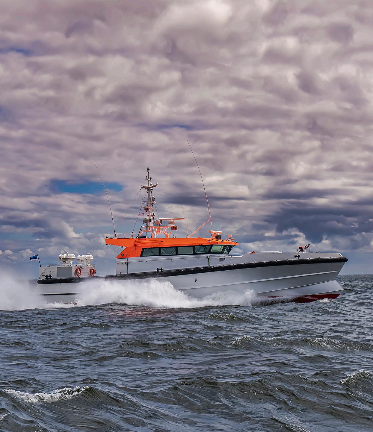 excellent manoeuvrability, position keeping and redundancy. Total propulsion power of 2205 kW guarantees the top speed in excess of 32 knots. The vessel is equipped with the latest radar systems, powerful searchlights and thermal imaging camera to guarantee successful search and rescue operations under the most extreme weather conditions and in the dark.