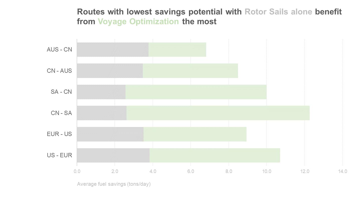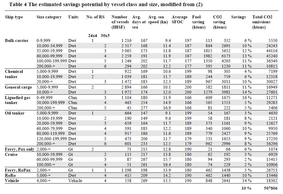 Table 3: Estimated fuel savings for “E-Ship 1” depending on ship speed and trading area
