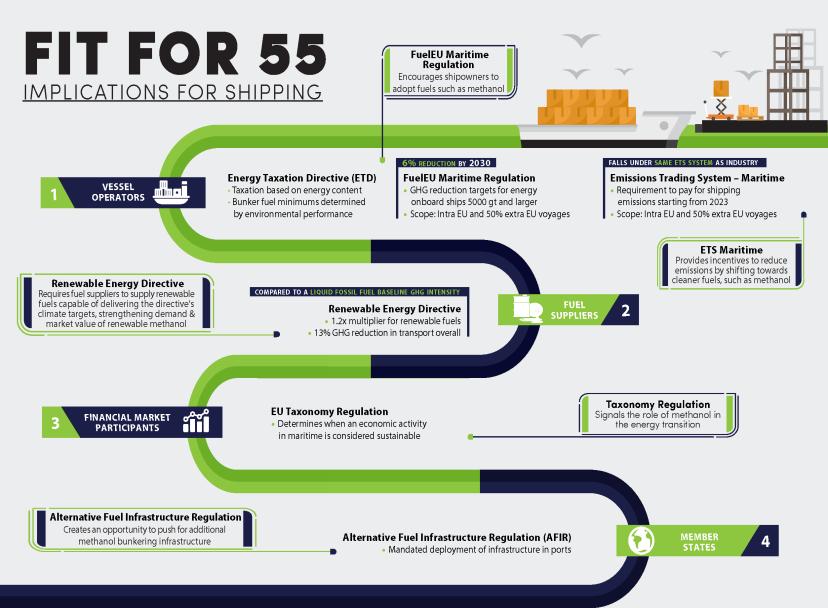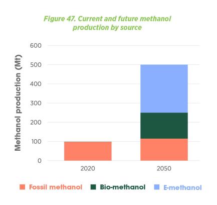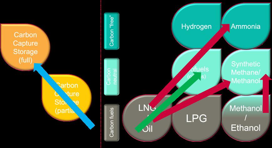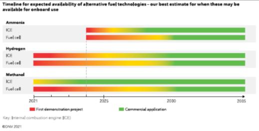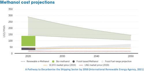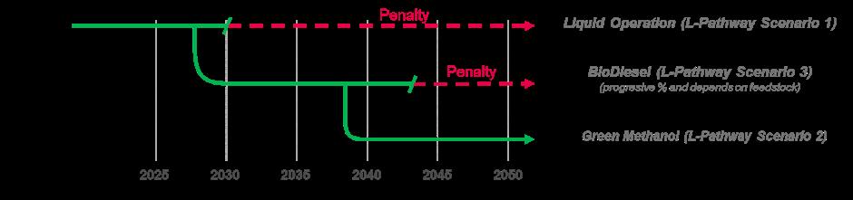 The concurrent introduction of upstream fuel (or hydrogen vector) production with dualfuel vessels capable of operating on methanol (or ammonia from 2024) will lead to profound changes in the fuel mix used in the deep-sea shipping market. Similar changes are occurring in the LNG market, where bio-methane and subsequently synthetic LNG, are likely to reduce GHG emissions from the market.