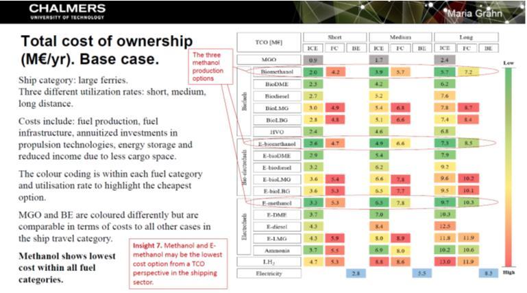 Unfortunately, besides the attractive reduction in CO2 emission, the economic side will always play an important role. Therefore, we have tried to assess the cost impact on a typical trip of 10000 nm.