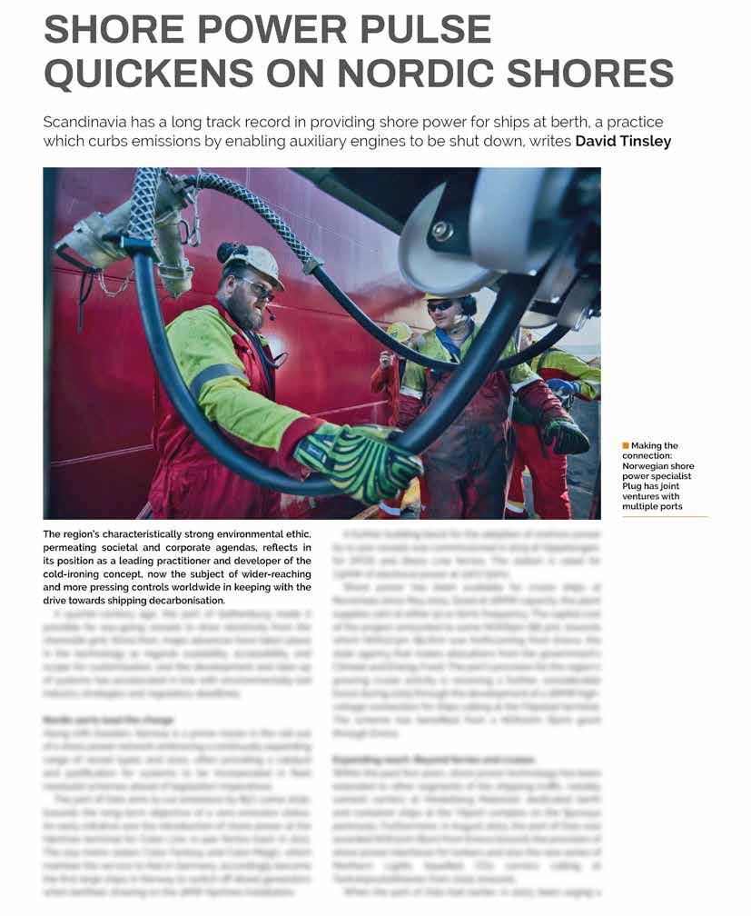 As we move through the calendar, industry events continue to offer a welcome platform for in-person exchange. The Motorship is also attending Nor-Shipping and, in this issue, we not only give a detailed history of the event on page 8 but, sticking to the region, also take a look at how the Nordic countries are setting the pace for the promotion of shore power—an environmental measure featured in FuelEU Maritime (and also a weekly newsletter put out by this publication).