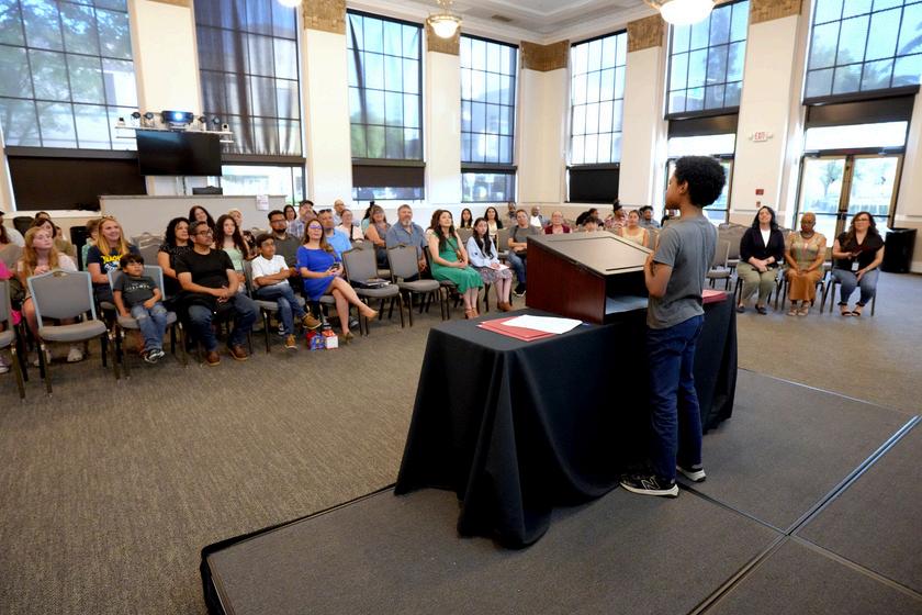 The Merced County Speech Festival is for students in grades 4 through 8. The Elementary level is for students grades 4 and 5 and the Middle School level is for grades 6 through 8. The Speech Festival is part of a countywide program that starts at the school level to allow students to advance to the county level. Each school can send three students per grade to represent their site. Speeches must be the original work of the student each year and must follow from categories of Persuasive, Tall Tale, Legend, Fable or TEDStyle Talk, but can be about any topic