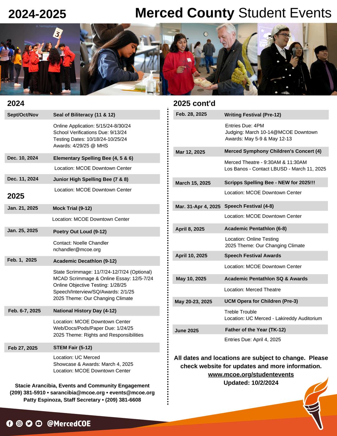 The information in this booklet was finalized October 8, 2024 Dates and/or locations are subject to change and will be posted at mcoe org/StudentEvents
