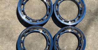 4 – 13” Trim rings. In very good condition, all attachment hardware intact. Very minor dents in two rings, minor oxidation in chrome, otherwise very presentable. Paul Roth, 608/843-3183, proth57@gmail.com.