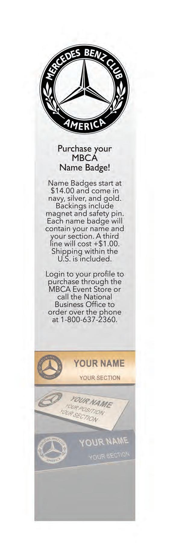 Send to Mercedes-Benz Club of America 1907 Lelaray Street, Colorado Springs, CO 80909-2872 or visit www.mbca.org