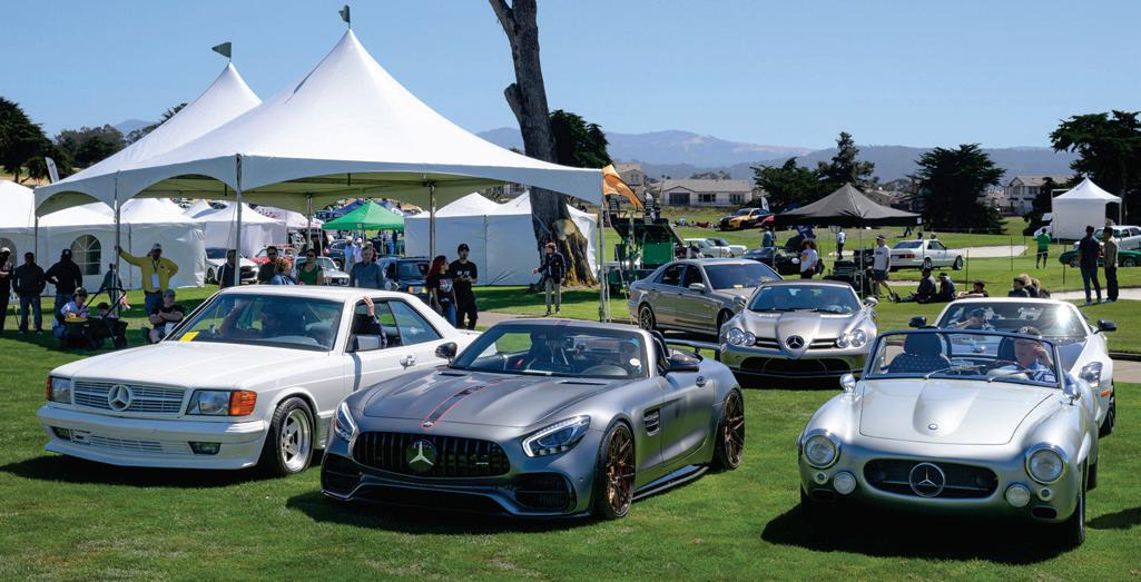 travel though the brisk coastal air. Like so many photos we have all seen of the Pebble Beach Concours arrivals that Sunday it creates quite the mood. But by noon, the fog breaks into a blue sky, and the images change into green grass and blue sky to contrast these legendary cars. Each year, we see some amazing examples of our beloved Mercedes-Benz cars. As the years passed, we saw how the hobby changed. As a proper concours, we have always celebrated those legends of the marque like the Gullwing and roadsters, 190 SLs, the Pagodas, and W 111 coupes. In recent years, we have seen a shift to the young-timer era, and Bruno Sacco designed cars. 2024, however, was all about the modified cars. We had a stacked class of modified entries that made our judges team work overtime. The highlights were a collection of 80s goodness representing Shant Meshefedjian of CMS Motorsports and two amazing custom tribute cars from S Klub LA. One was a modern version of the famed Red Pig built on a W 109 6.3 chassis using a modern C 63 drivetrain and interior. It won my Chairman Award. The level of detail is amazing! Best in Marque this year was David Salazar and his 1987 560 SL in the ever-popular Signal Red. This car is a time capsule, and his neighbors bought it new. As a kid, he envied this car. When the opportunity happened to purchase, he jumped at the chance. As we wrap up another successful year for Car Week and Legends, we’re already counting down the days to August 2025. The event’s unique features, such as the debut of new cars and the chance to meet fellow MBCA members, make it an unforgettable experience for car enthusiasts.