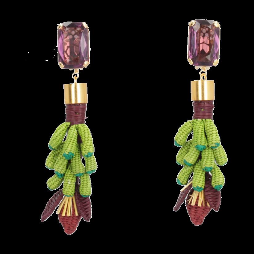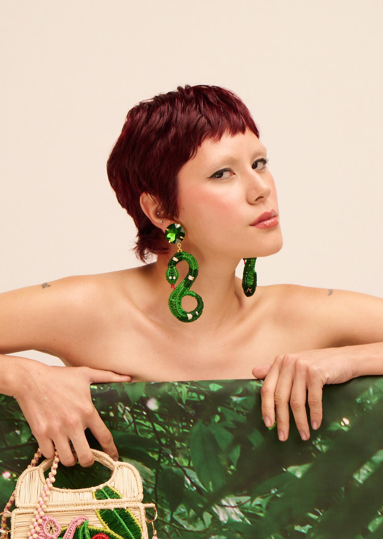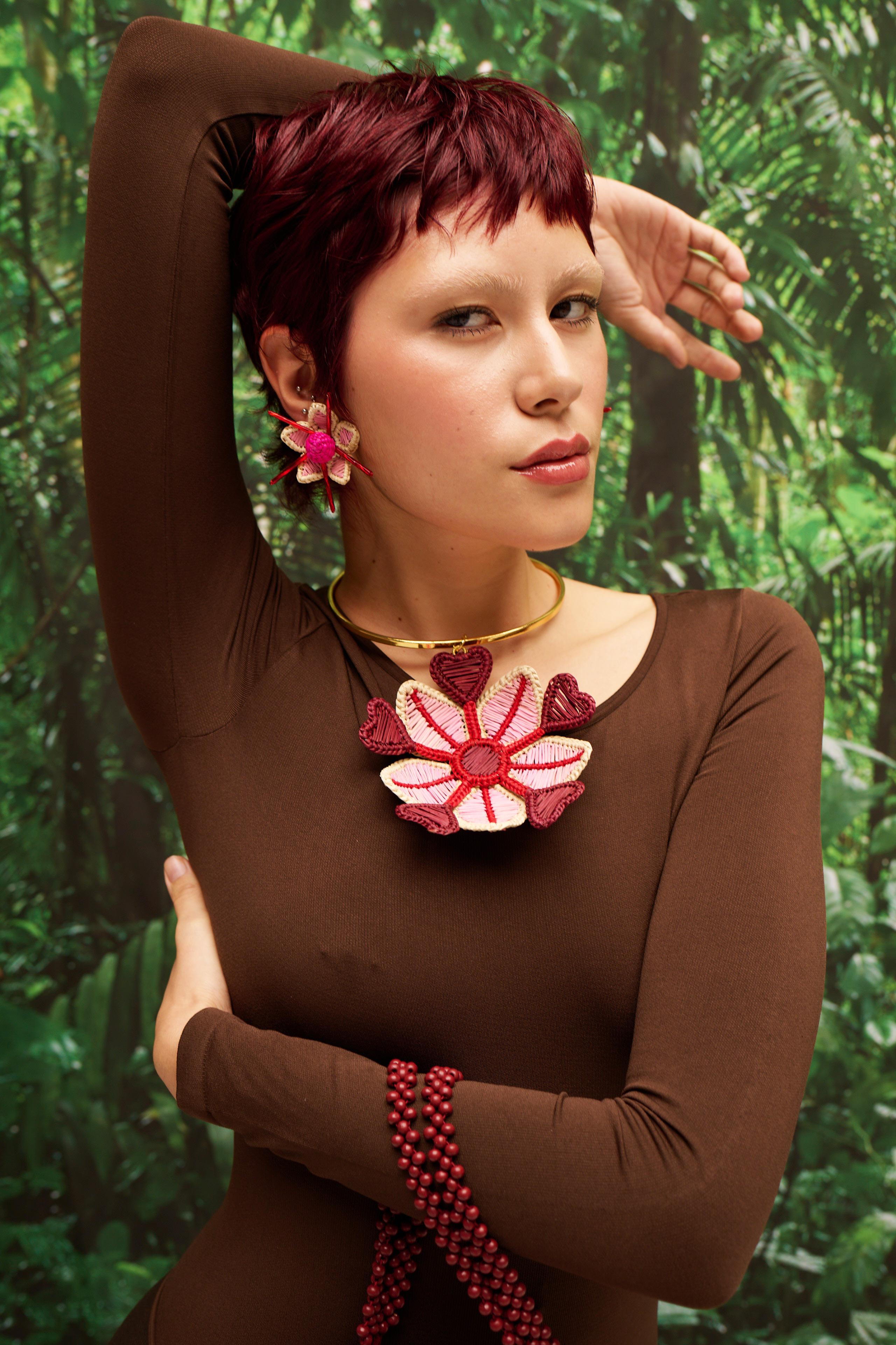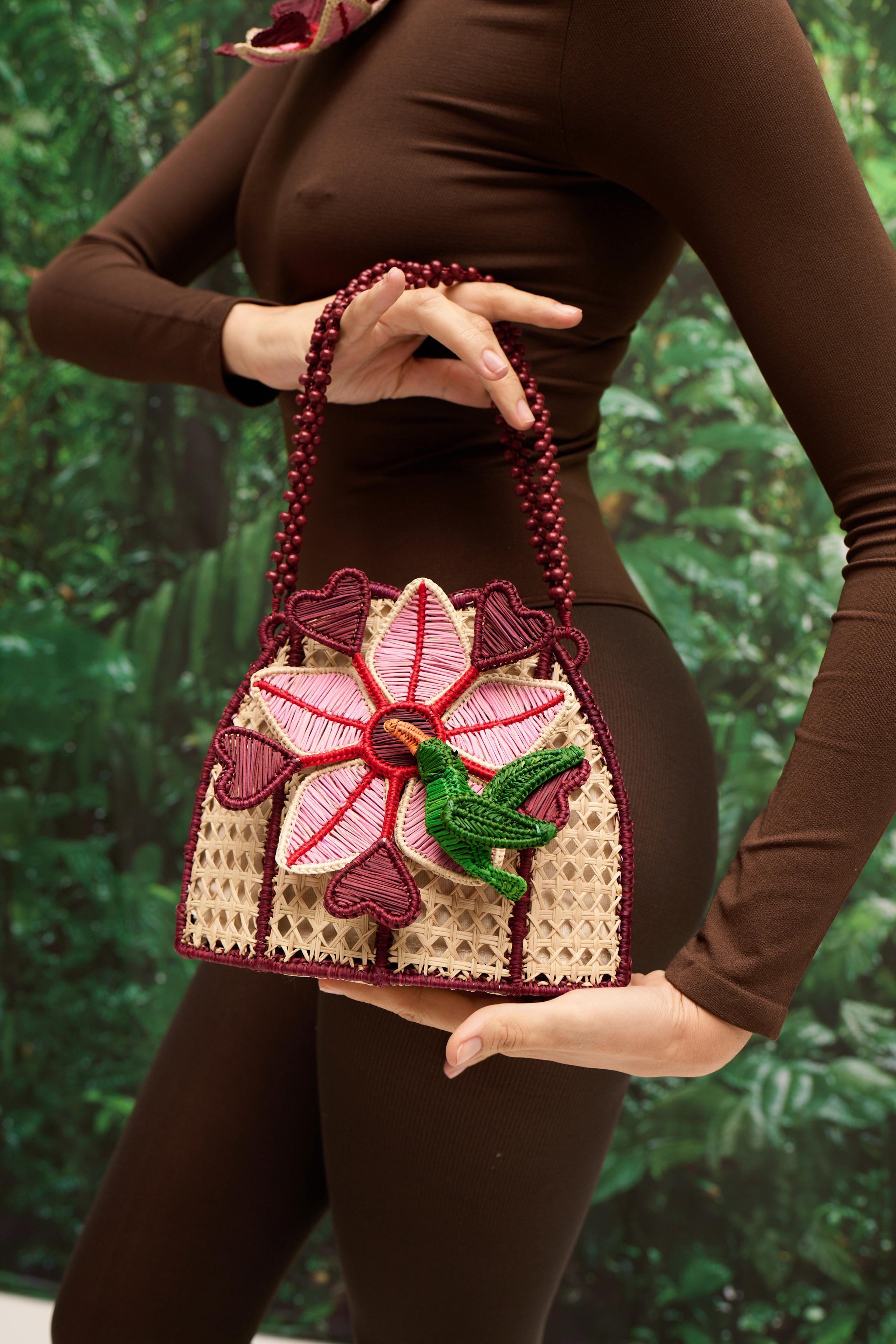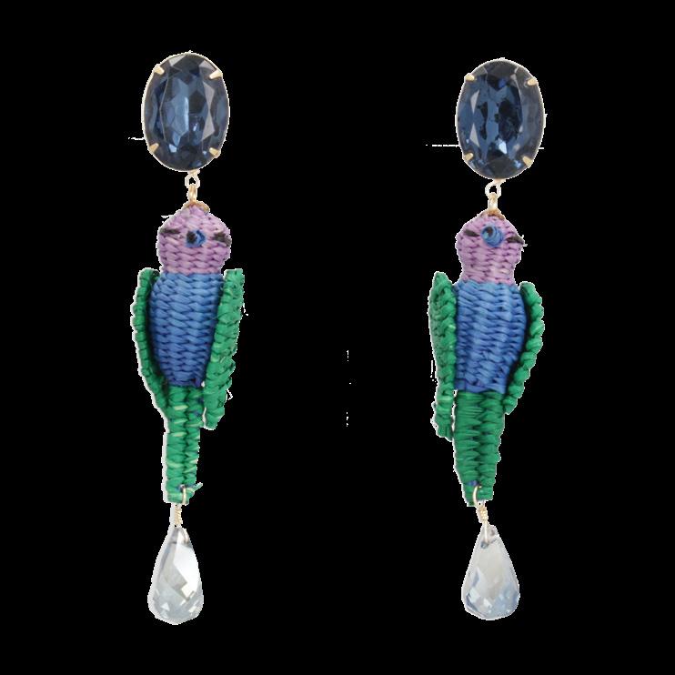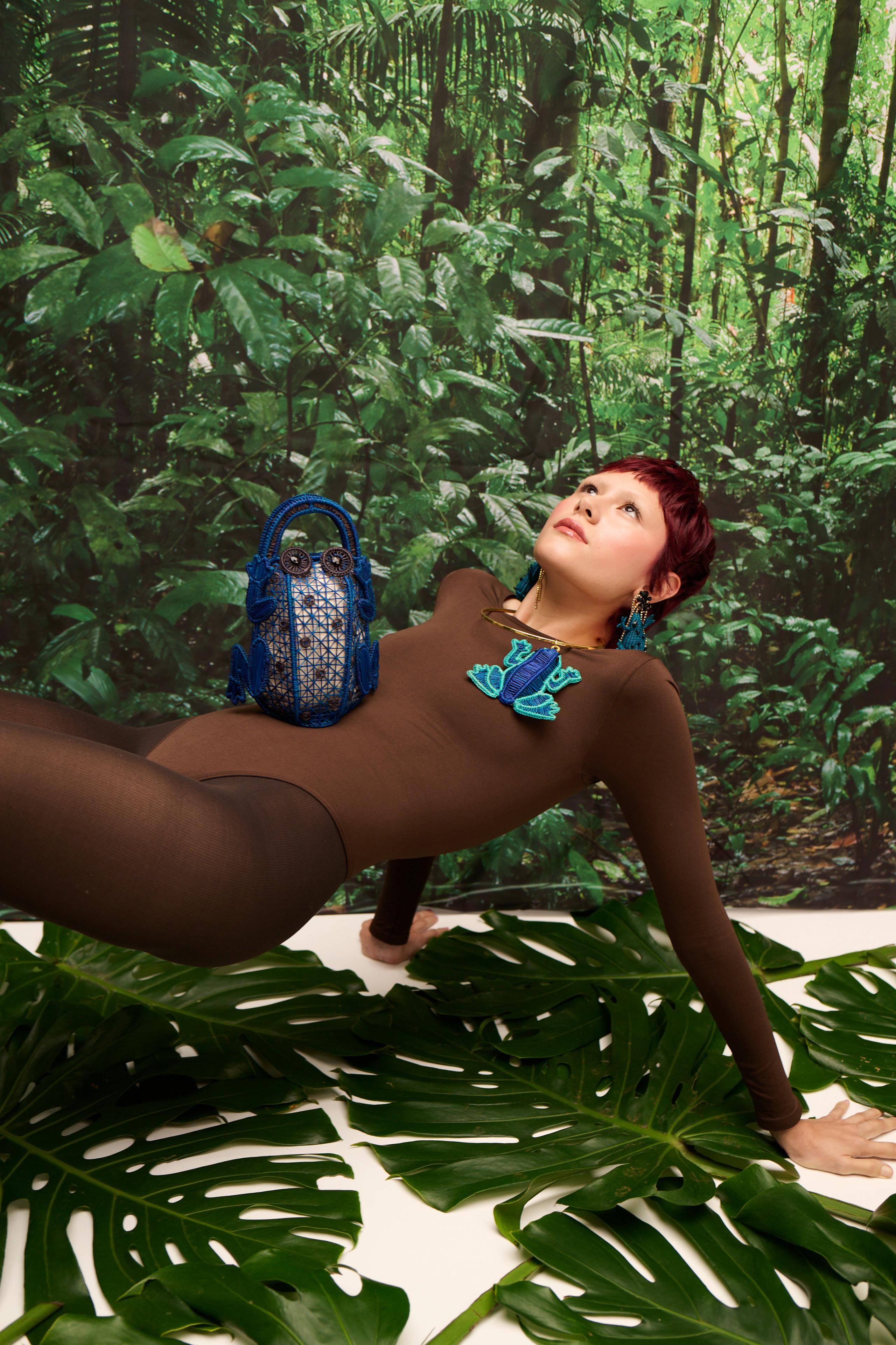 A river of colors runs through the forest, and hands weave what the earth whispers. From the heart of Colombia, the forest speaks through our hands. Raffia, crystals, semiprecious stones, gold-plated bronze, and feathers become vessels of its memory. Every piece is crafted in community, carrying the wisdom of generations. In these creations, the Amazon reveals itself- the playful monkeys, the call of fantastic birds, the jaguar’s silent power, the blue branch with black dots,the blossoms of copoazú and banana.We created earrings that dance with you and sway with the wind, necklaces filled with meaning and power, bags to hold your treasures, and handwoven baskets that carry our story in every knot. They carry the soul of the jungle—untamed, radiant, eternal. May you listen to these whispers and let the Amazon speak through you.