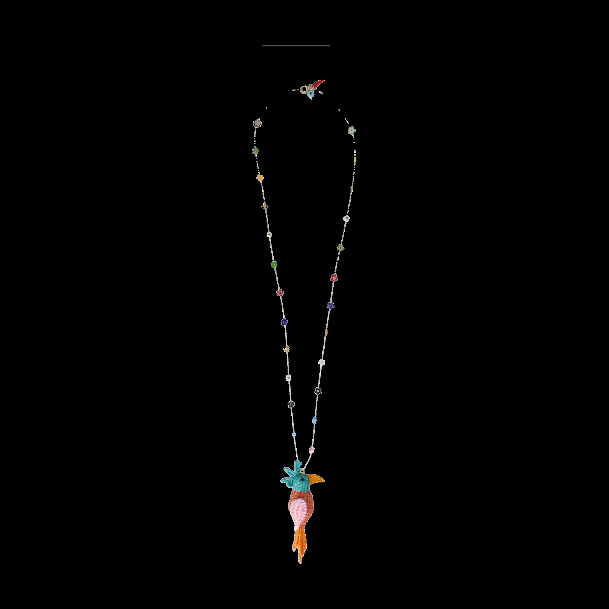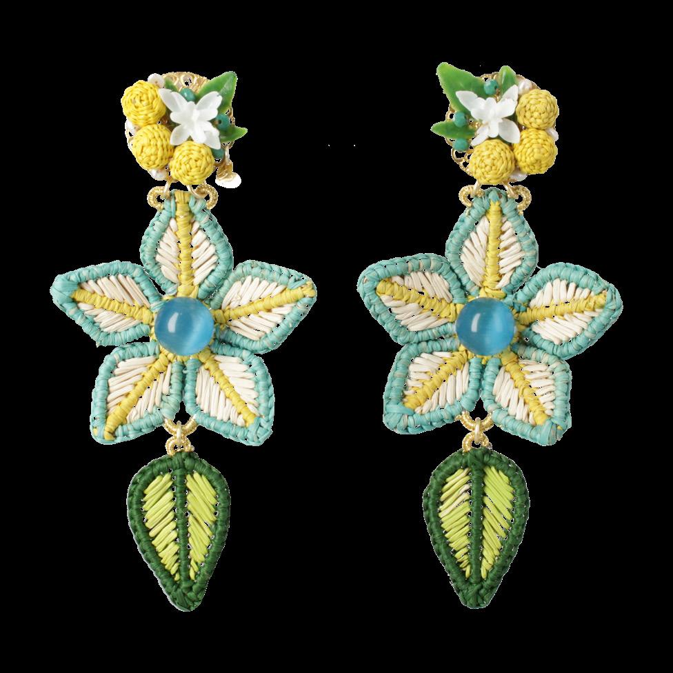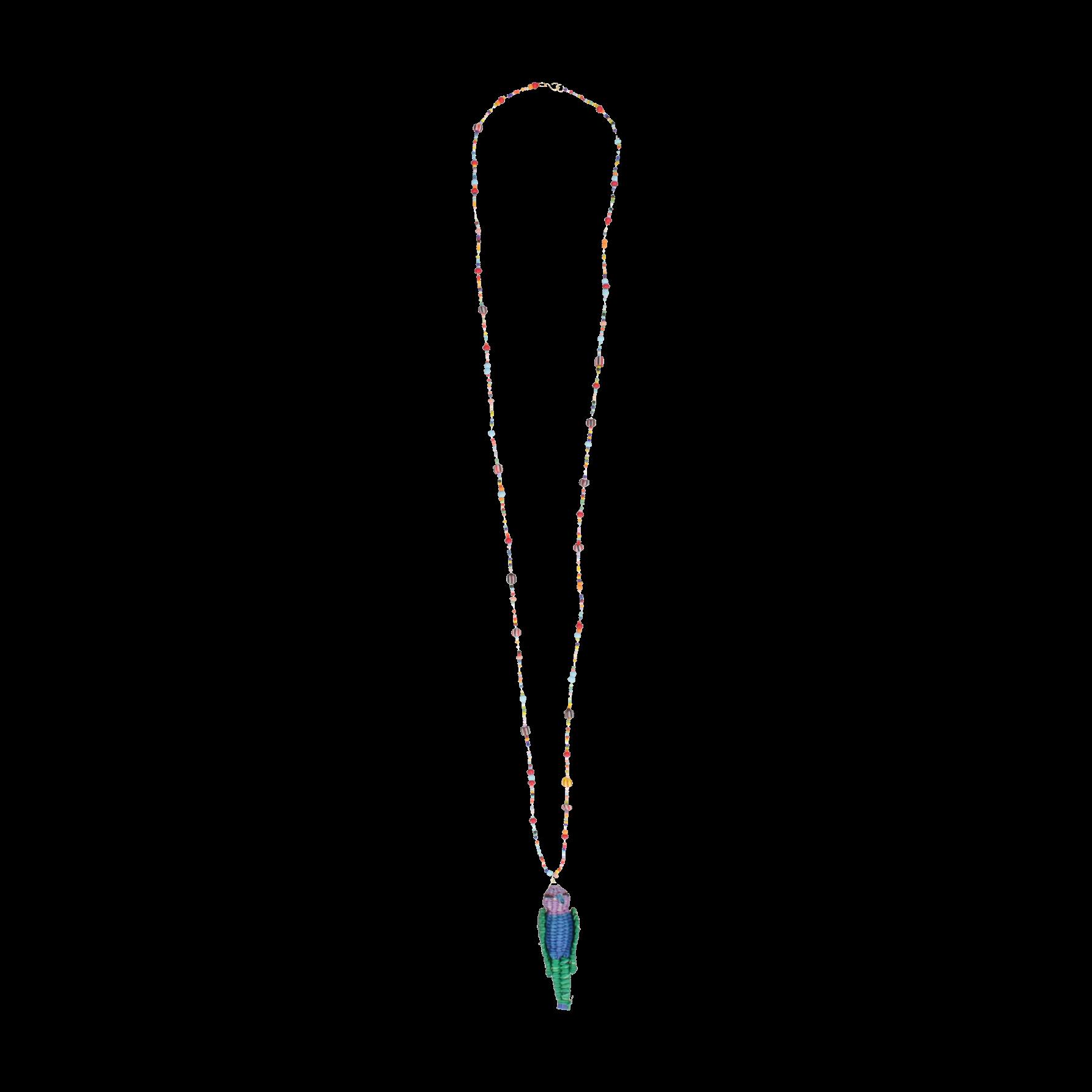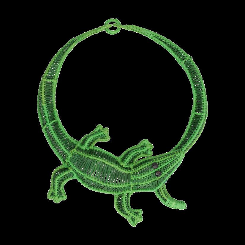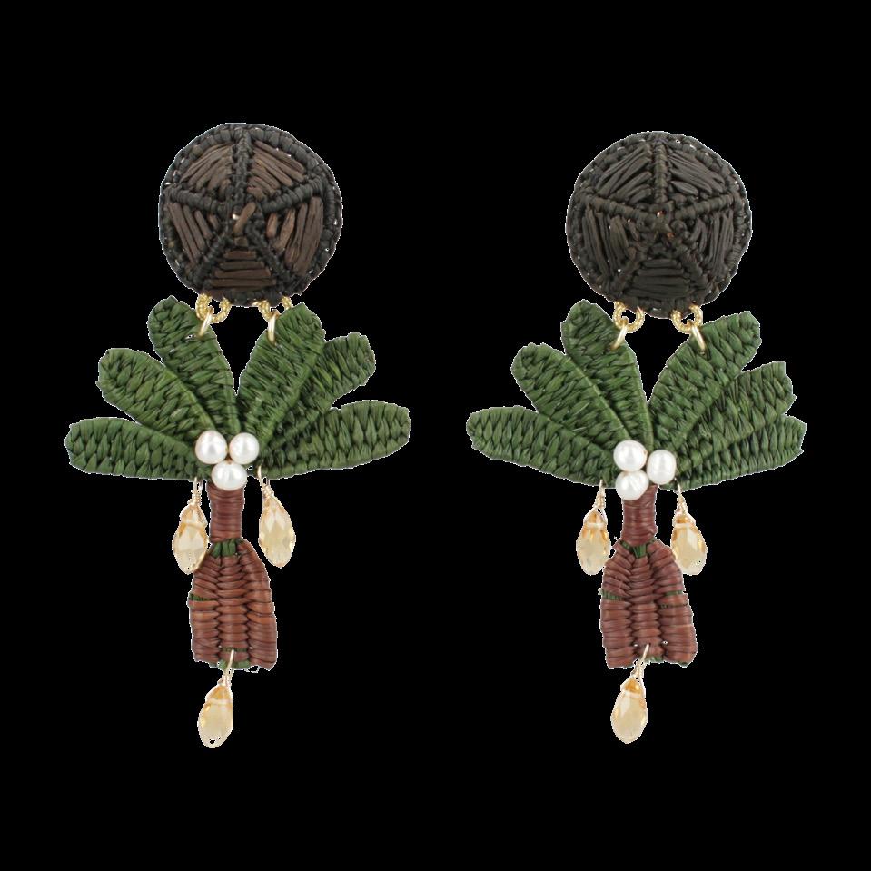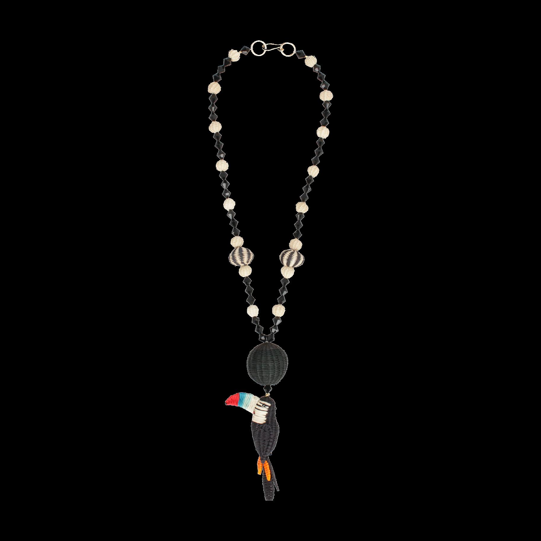 A river of colors runs through the forest, and hands weave what the earth whispers. From the heart of Colombia, the forest speaks through our hands. Raffia, crystals, semiprecious stones, gold-plated bronze, and feathers become vessels of its memory. Every piece is crafted in community, carrying the wisdom of generations. In these creations, the Amazon reveals itself- the playful monkeys, the call of fantastic birds, the jaguar’s silent power, the blue branch with black dots,the blossoms of copoazú and banana.We created earrings that dance with you and sway with the wind, necklaces filled with meaning and power, bags to hold your treasures, and handwoven baskets that carry our story in every knot. They carry the soul of the jungle—untamed, radiant, eternal. May you listen to these whispers and let the Amazon speak through you.