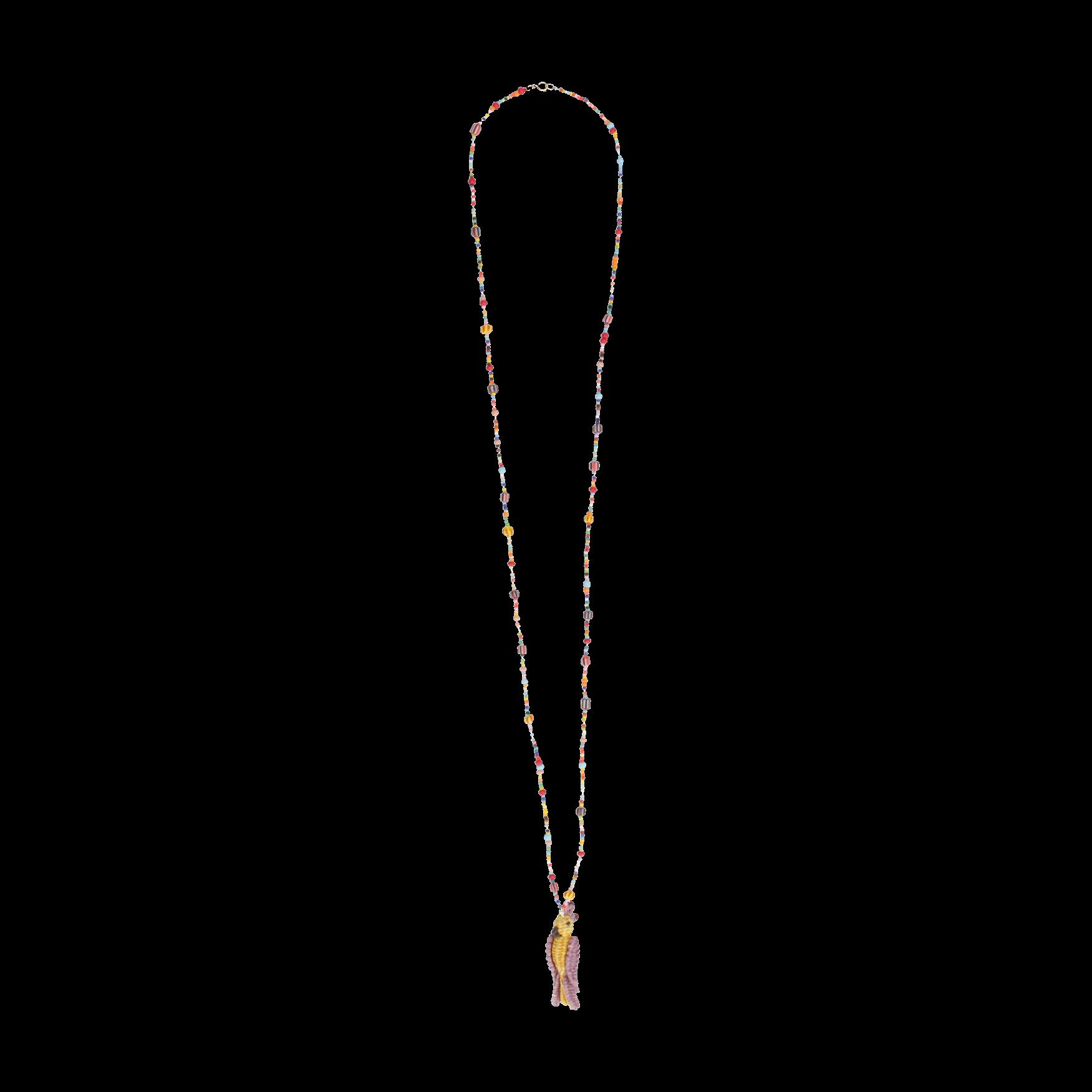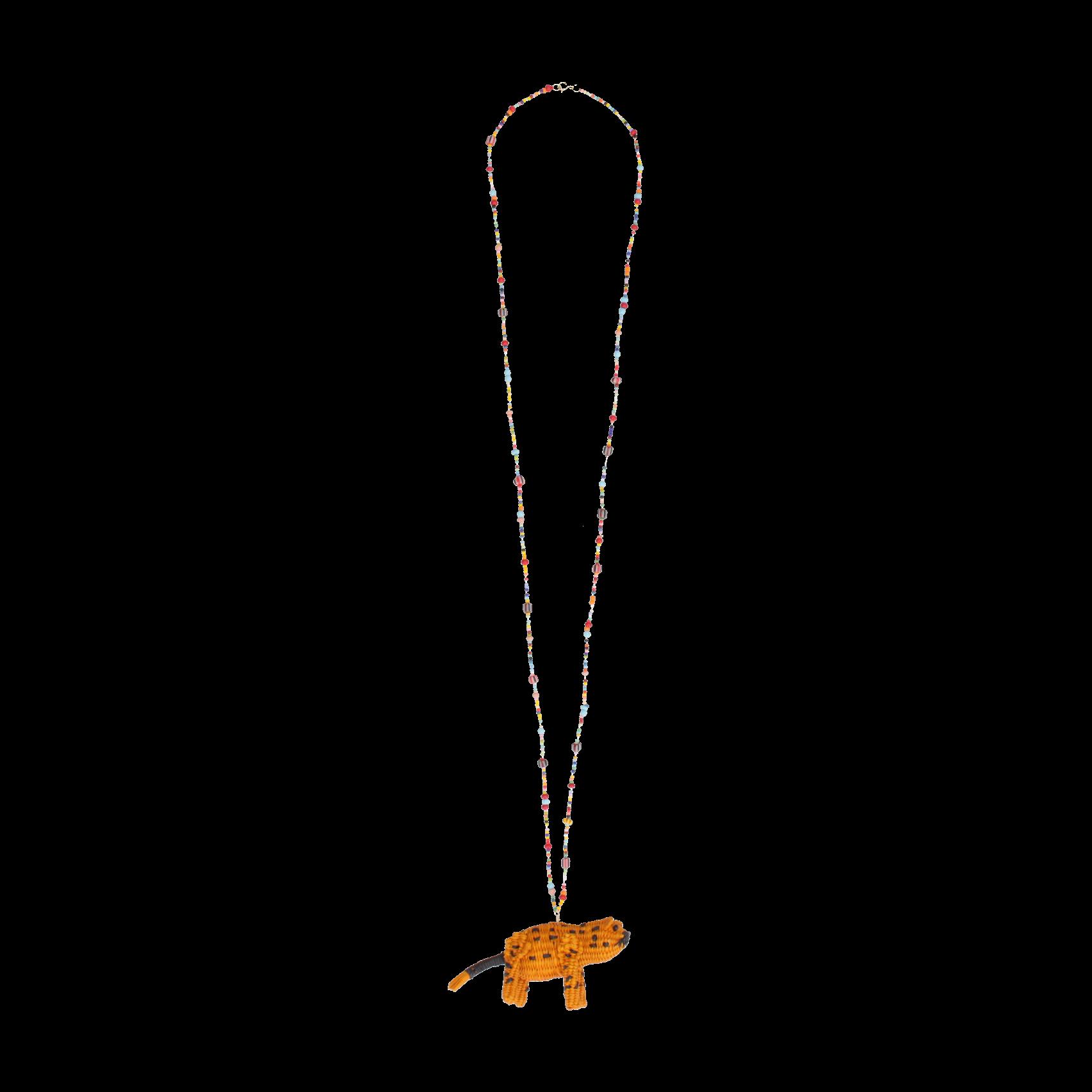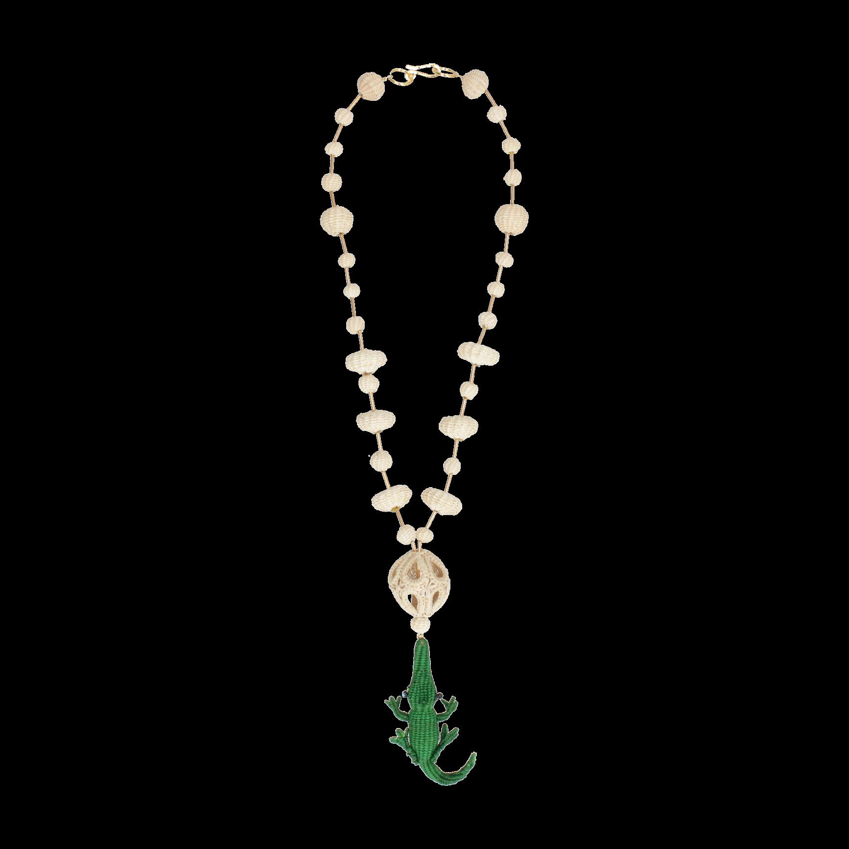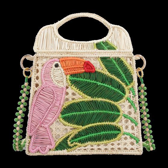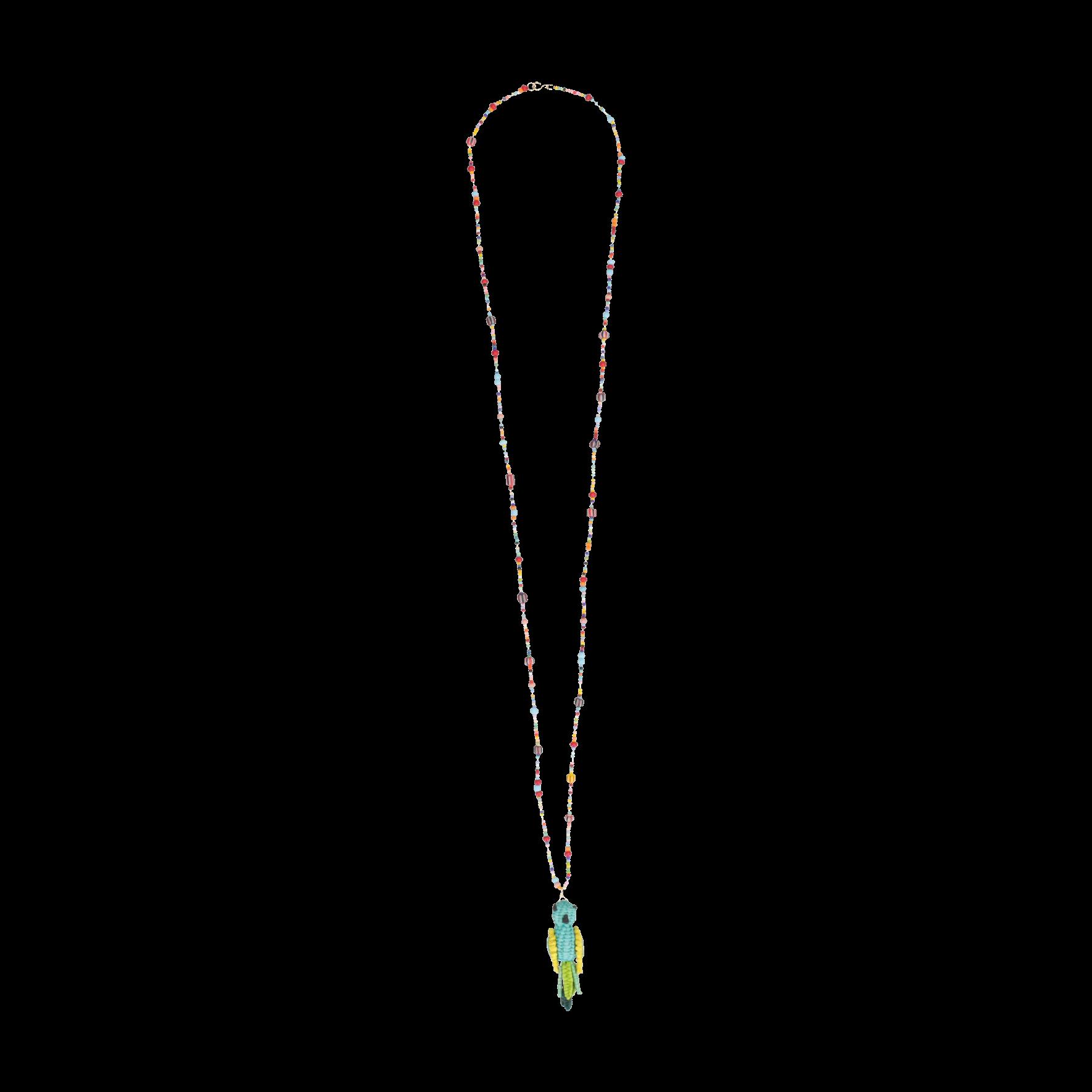 A river of colors runs through the forest, and hands weave what the earth whispers. From the heart of Colombia, the forest speaks through our hands. Raffia, crystals, semiprecious stones, gold-plated bronze, and feathers become vessels of its memory. Every piece is crafted in community, carrying the wisdom of generations. In these creations, the Amazon reveals itself- the playful monkeys, the call of fantastic birds, the jaguar’s silent power, the blue branch with black dots,the blossoms of copoazú and banana.We created earrings that dance with you and sway with the wind, necklaces filled with meaning and power, bags to hold your treasures, and handwoven baskets that carry our story in every knot. They carry the soul of the jungle—untamed, radiant, eternal. May you listen to these whispers and let the Amazon speak through you.