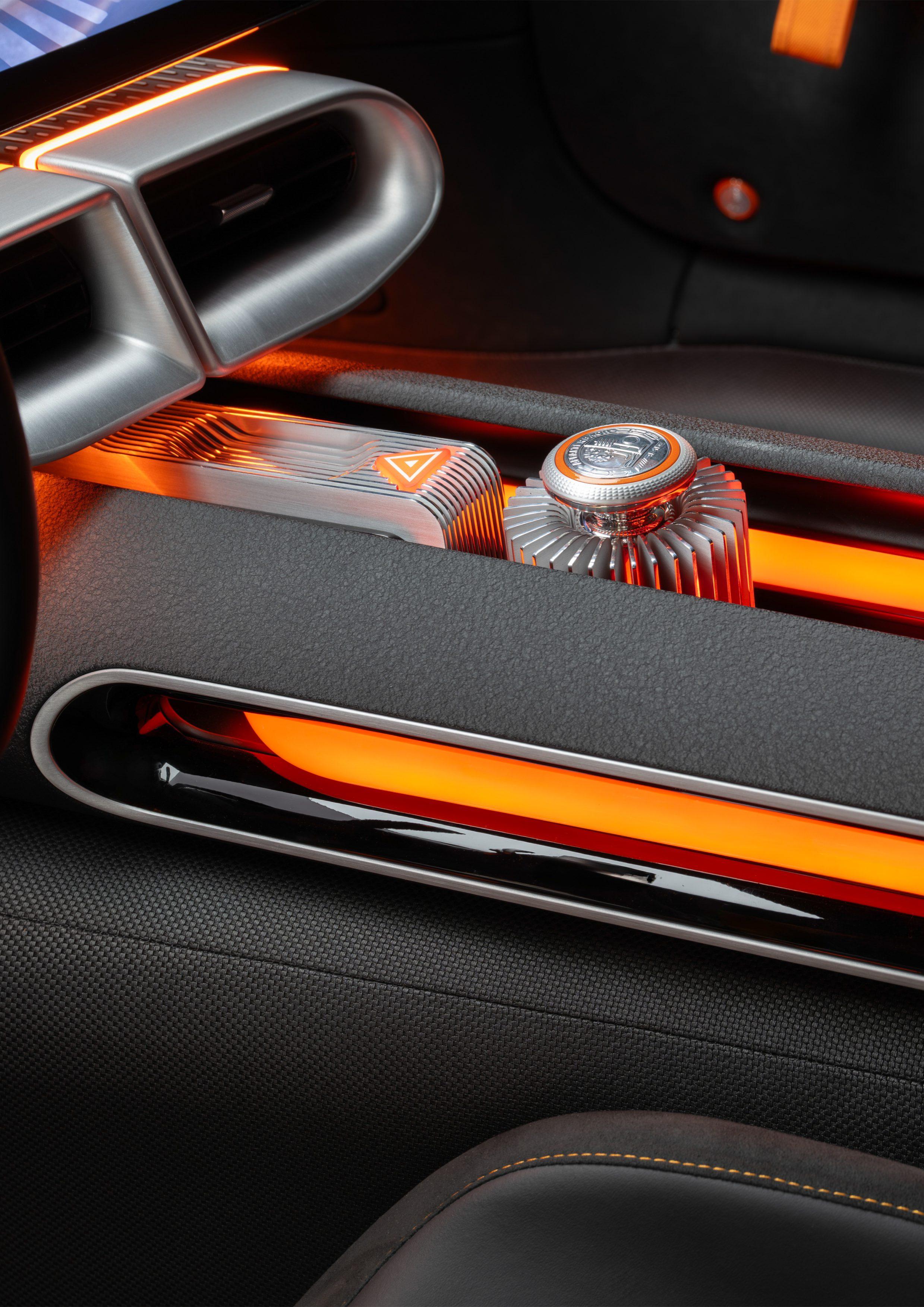 The interior of the CONCEPT AMG GT XX is reduced to the essentials, like a racing car, while offering a luxurious look and feel. The silver and orange accents come clearly to the fore and emphasise the visually minimalist focus on technical elements.