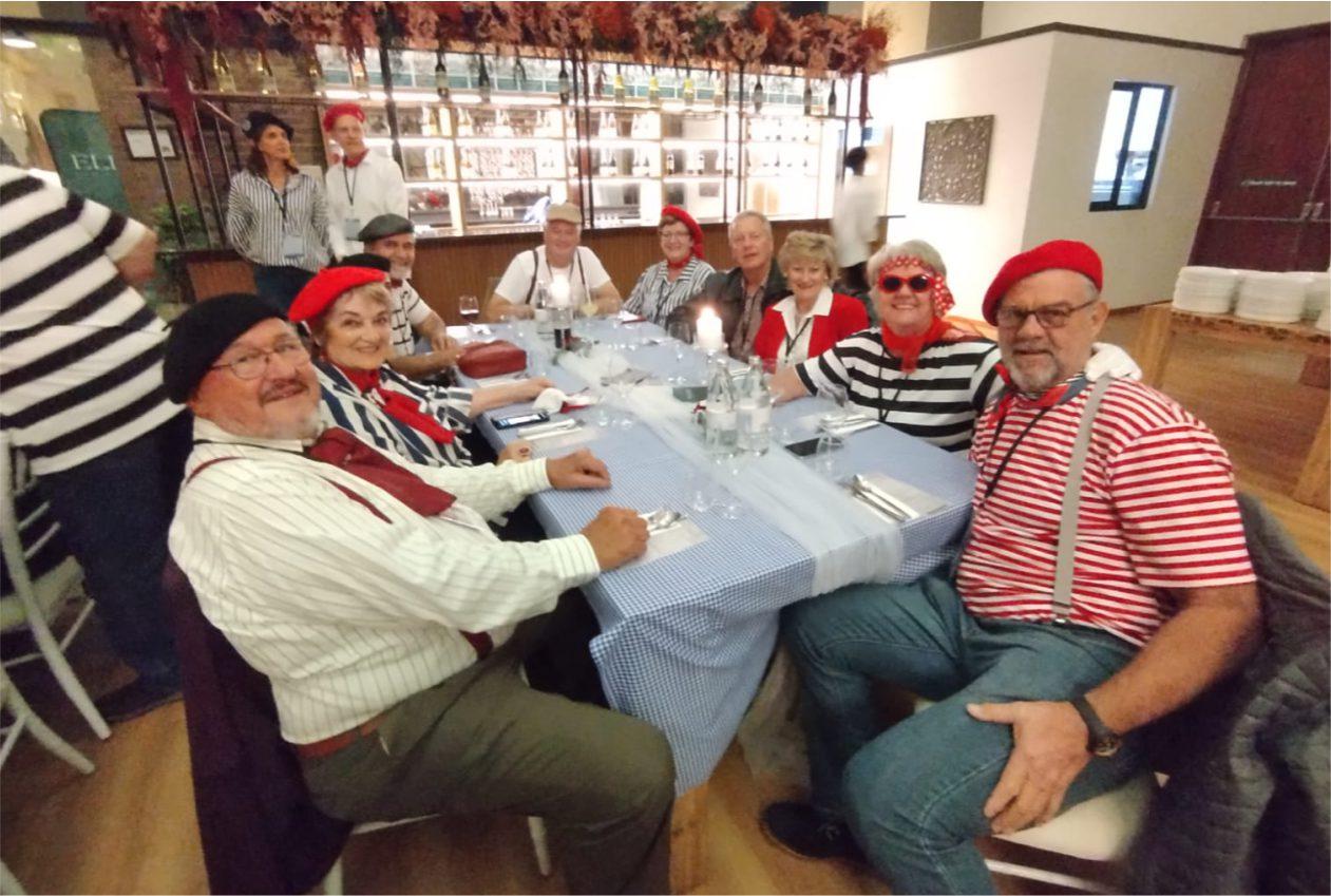 With the formalities behind them, it was time for members to immerse themselves in the spirit of Franschhoek — South Africa's own little corner of France. The evening transformed into a celebration of French lair, as attendees returned to Franschhoek Cellars for a French-themed harvest table dinner Live Parisian-style accordion music provided a nostalgic soundtrack, transporting guests to a cafe on the streets of Paris. Costumes ranged from charming to extravagant, with prizes awarded to the best dressed lady and gentleman.