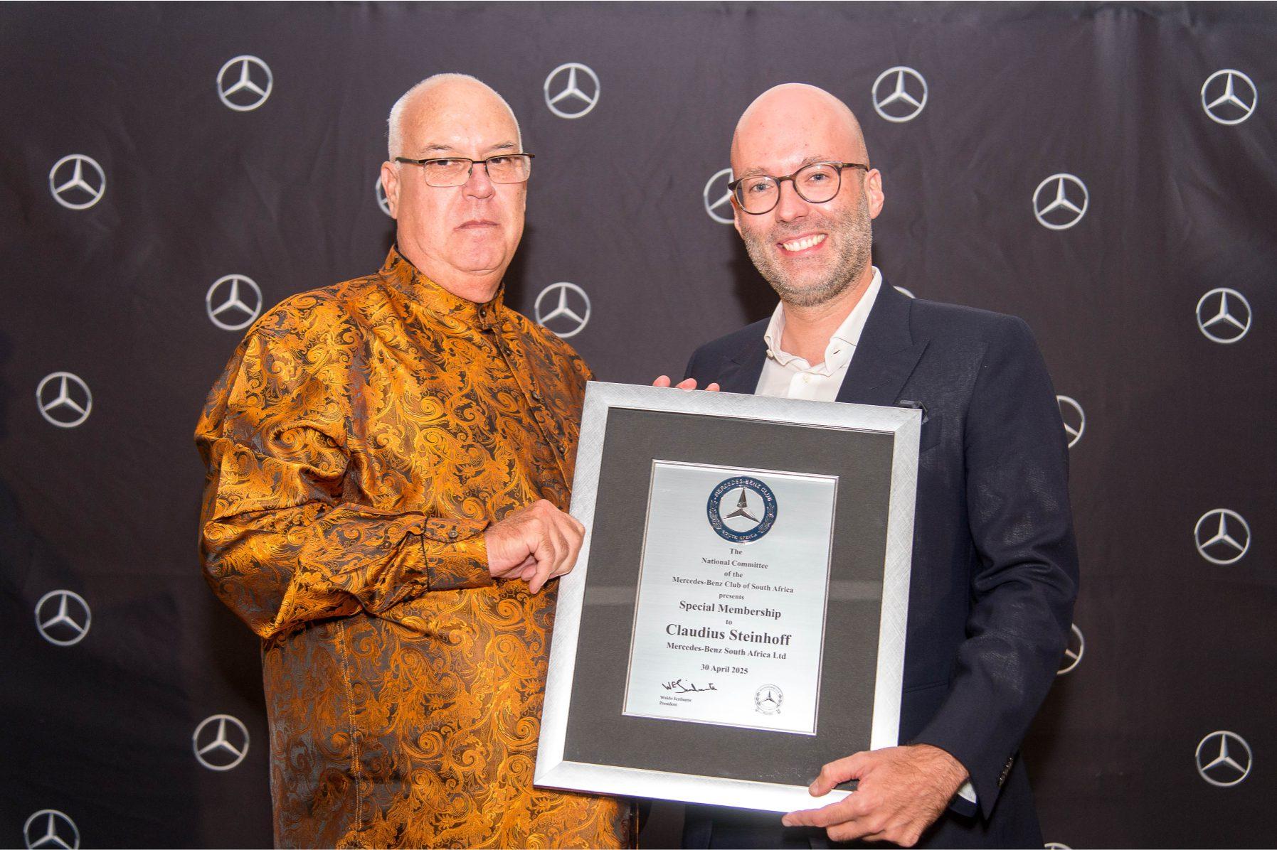 At our Annual General Meeting on Monday afternoon, the National Committee and members of the Mercedes-Benz Club of South Africa unanimously voted to bestow a Special Membership upon you, Claudius Steinhoff, in recognition of your leadership and the enduring relationship betweenMercedes-BenzSouthAfricaandourClub.