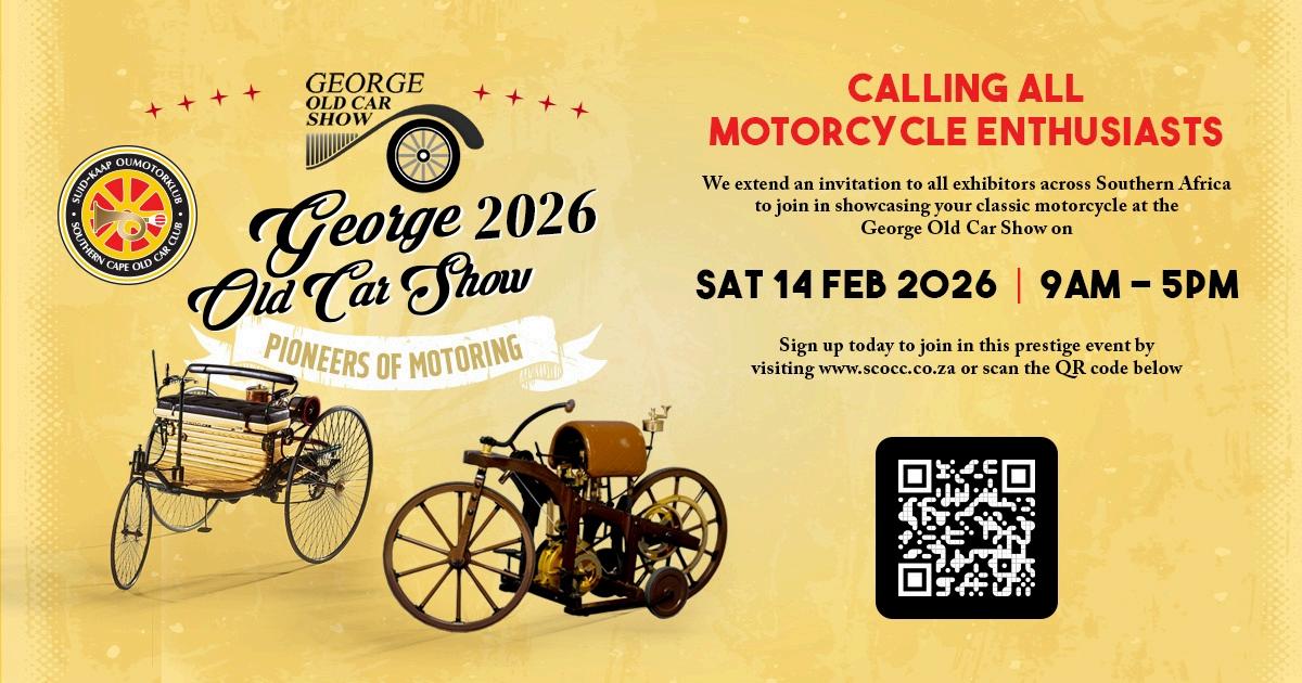 Die 20 ste VETTOER word vir Vrydag 13 Februarie 2026 vanaf Prins Albert na George beplan Die veteraantoer word gereël vir die dag vóór die 2026 George Oumotorskou. Kom vier fees saam met ons!