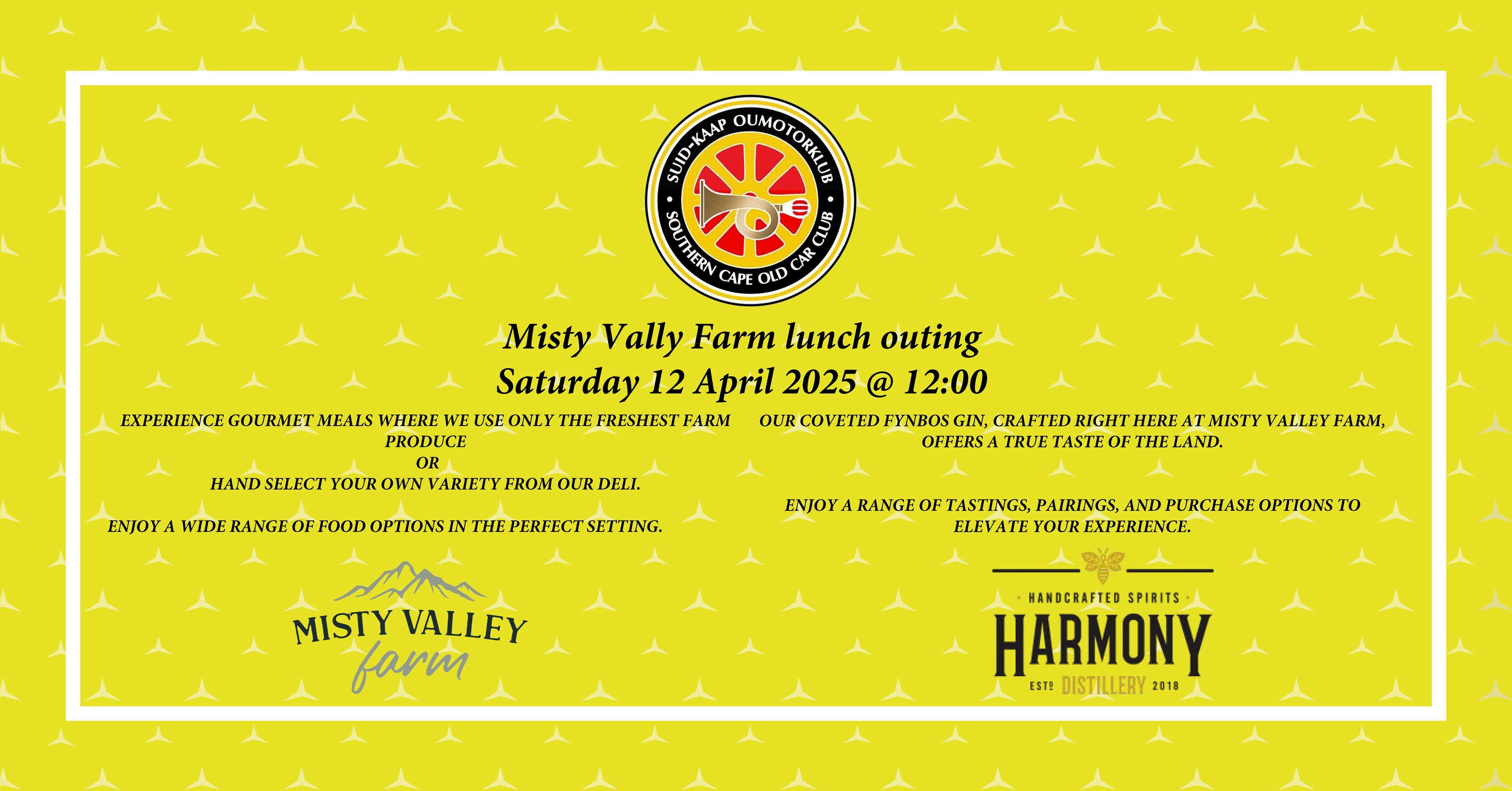 The 20th VETTOUR is planned to start from Prince Albert to George on Friday 13 February 2026. The tour is being arranged for the day before the 2026 George Old Car Show. These tours have been a great success over the past 19 years, and we are therefore excited to again arrange such an event for 2026 Thanks to everyone who in the past has made it possible for these VETTOURS to take place It is a great honour for the Southern Cape Old Car Club to welcome these special cars from across the country, to the Southern Cape.