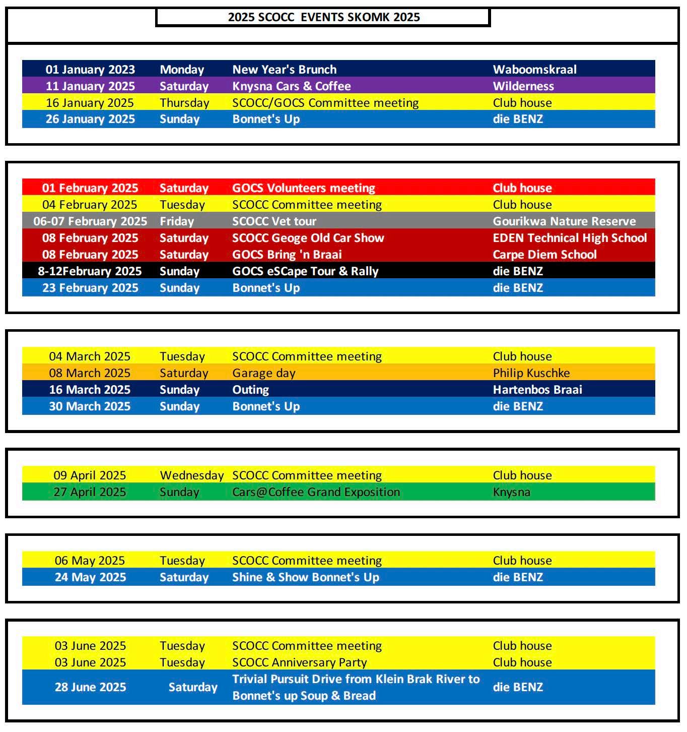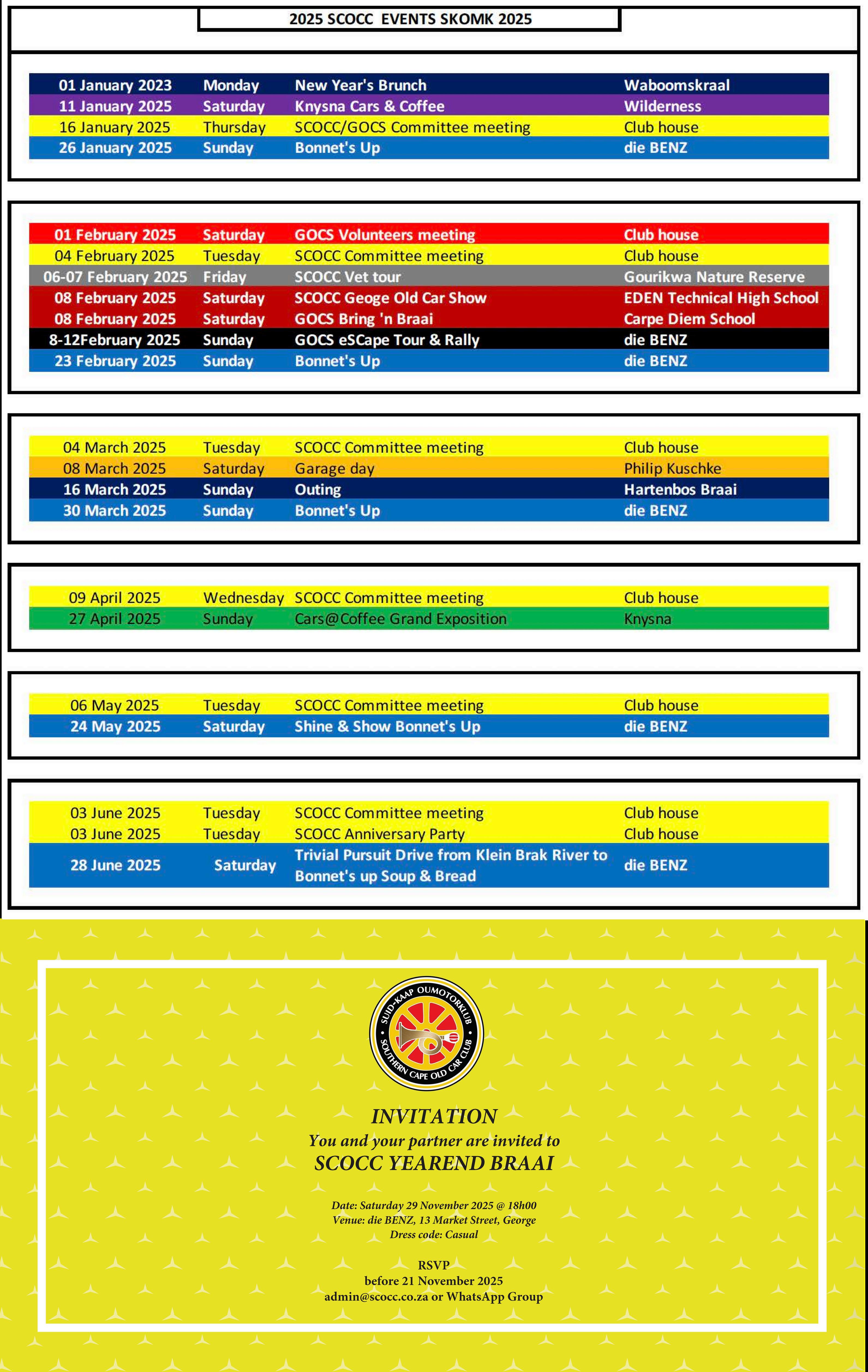 • Annual General Meeting: Saturday, 29 November 2025 @ 15h30 Yearend Braai at 'die BENZ' @ 18:00