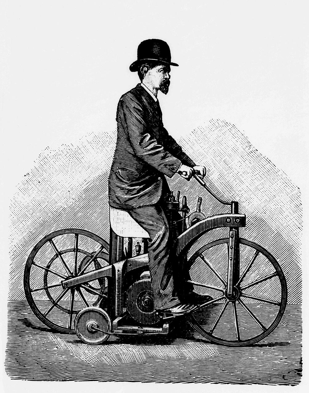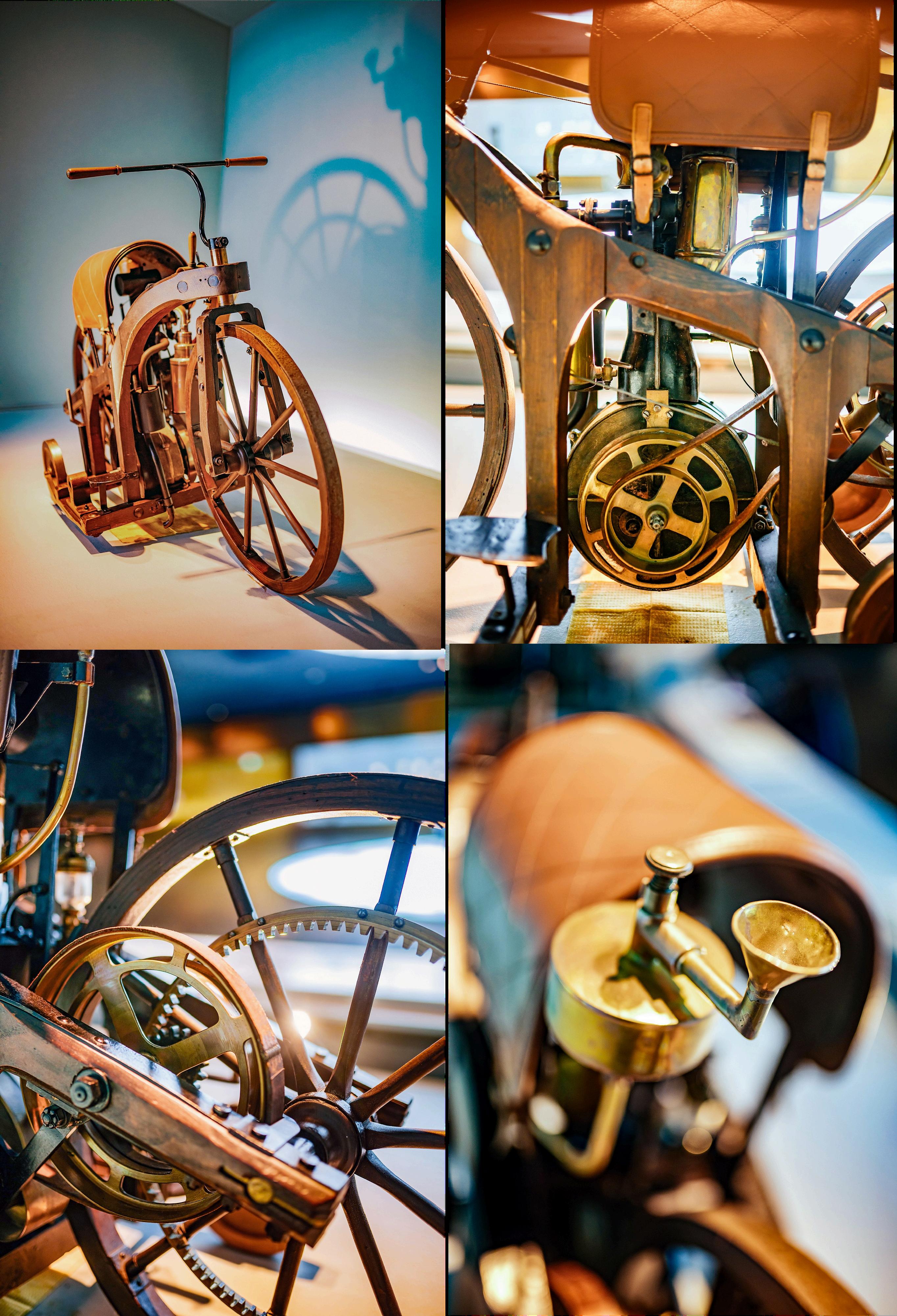Equipped with a high-speed four-stroke engine, the riding carriage is the world's first motorcycle
