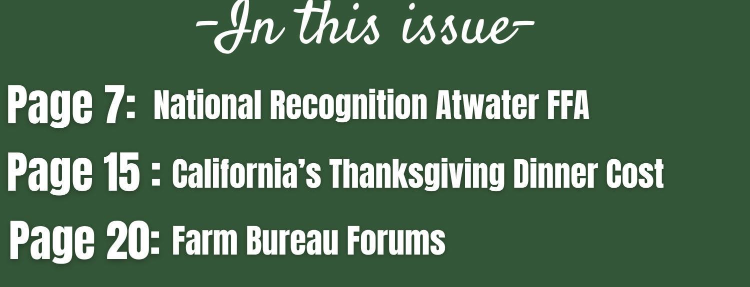 Just like that, November is here. Rains have begun and the holiday season is just about here. December also brings the California Farm Bureau Annual Meeting that will take place in Orange County the second weekend of December. I’m sure there will be plenty of discussion on the passing of Proposition 50 and the challenges it will bring for rural communities. It will be an election year this year. Stay tuned for a full wrap-up in a future article. This is always a great event and Merced County will be well-represented.