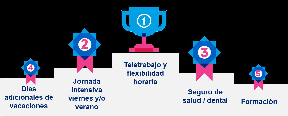 La conciliación ha cobrado en los últimos años, como consecuencia de la pandemia, un enorme peso en la demanda de los trabajadores. Así, el 57% de los empleados señalan que cambiarían de compañía si mejoraran sus actuales condiciones de teletrabajo y flexibilidad horaria. Según los encuestados el teletrabajo y la flexibilidad, la jornada intensiva y el seguro de salud son los beneficios que diferencian una organización sobre otra. Asimismo, las empresas han realizado enormes avances en este sentido a lo largo de estos últimos cinco años. Un beneficio que apenas el 40% de las empresas ofertaba en 2018 y que ahora 6 de cada 10 organizaciones lo incluye en sus paquetes de beneficios.