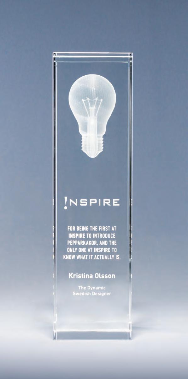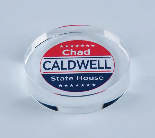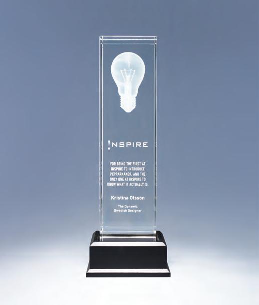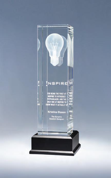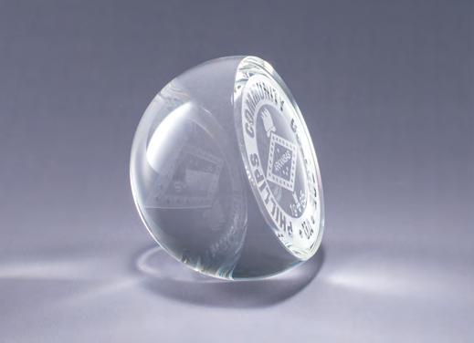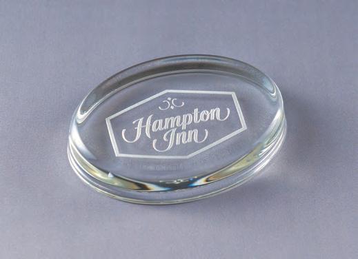 SKU DESCRIPTION DIMS WEIGHT 6–24 25–99 100–250 477 Ellipse Paperweight 2.5”H x 3.75”W x 0.75”D 1 lb $37.75 $35.85 $34.05 3080 App Paperweight 3.5”H x 3.5”W x 0.75”D 2 lb $45.35 $43.10 $40.95 219 Illuminae Paperweight 3.75”H x 4”W 3 lb $61.15 $58.10 $55.20 391 Kaleidoscope Paperweight 3.5”DIA x 0.5”D 2 lb $43.60 $41.40 $39.35 3080 219 477 391 3C