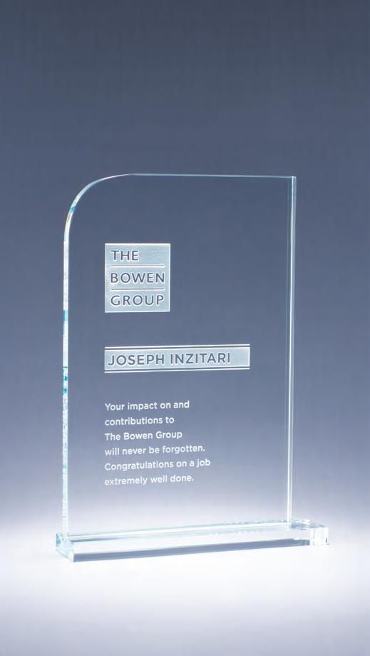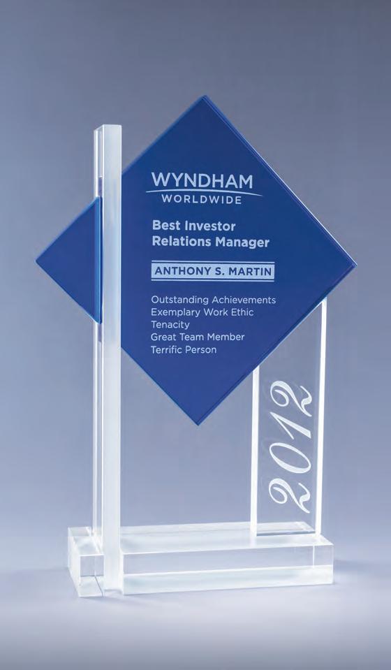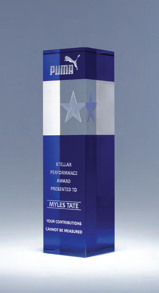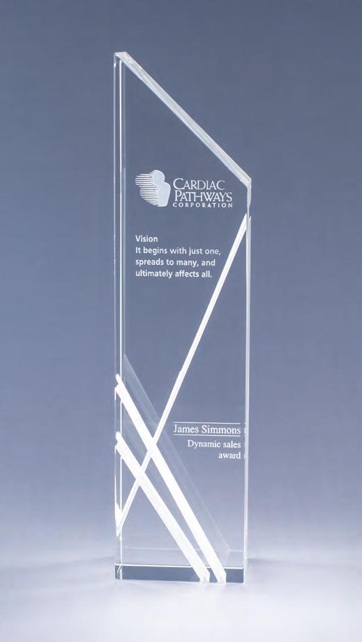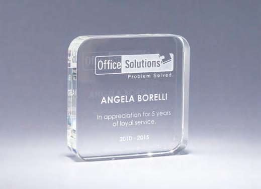 SKU DESCRIPTION DIMS WEIGHT 6–24 25–99 100–250 1040 Plaza Paperweight 3”H x 3”W 4 lb $48.40 $46.00 $43.70 119 Stand-Up Paperweight 3.5”DIA x 1.25”D 2 lb $48.90 $46.45 $44.15 112 6” Oblique Ruler 6”H x 2”W 1 lb $35.15 $33.40 $31.75 1040 119 112 3C