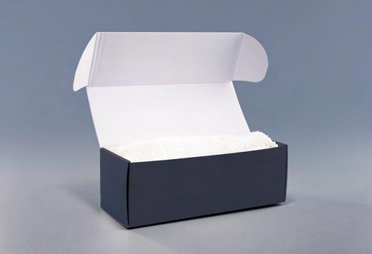 This gift box will enhance your selection in a way that standard brown, black, or off-white corrugate cannot approach. The exterior boasts a blue laminate, while the white corrugate interior brightens contents coordinating with the designer look.