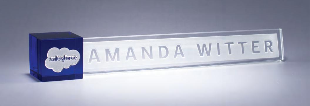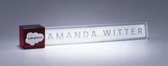 SKU DESCRIPTION DIMS WEIGHT 1–9 10–24 25–100 215 Director’s Nameplate 12”L x 2”W 1 lb $75.05 $71.30 $67.75 1–5 6–24 25–99 216 Accent Nameplate 1.75”H x 12”W x 1.75”D 1 lb $71.40 $67.85 $64.45 216