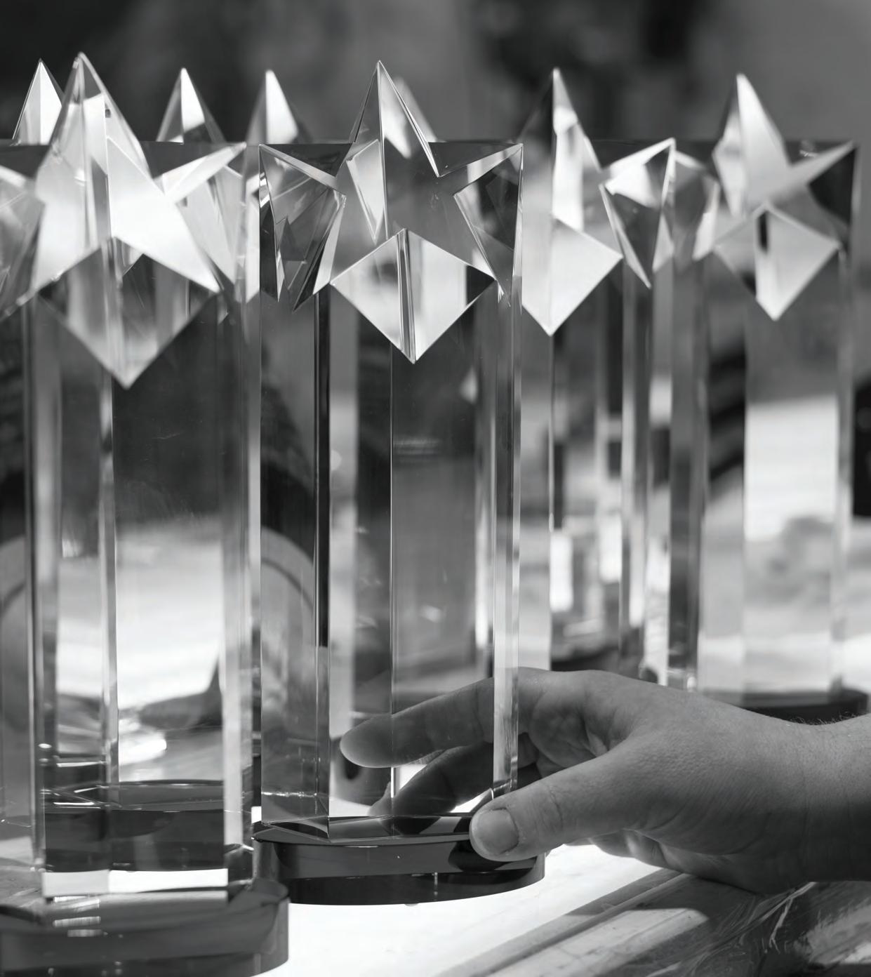 This is our bread and butter. Our proprietary sand blasting technique allows us to aggressively etch crystal, glass, and stone. We choose to use a heavier grit which results in a deeper etch, unmatched sparkle, and a much happier customer!