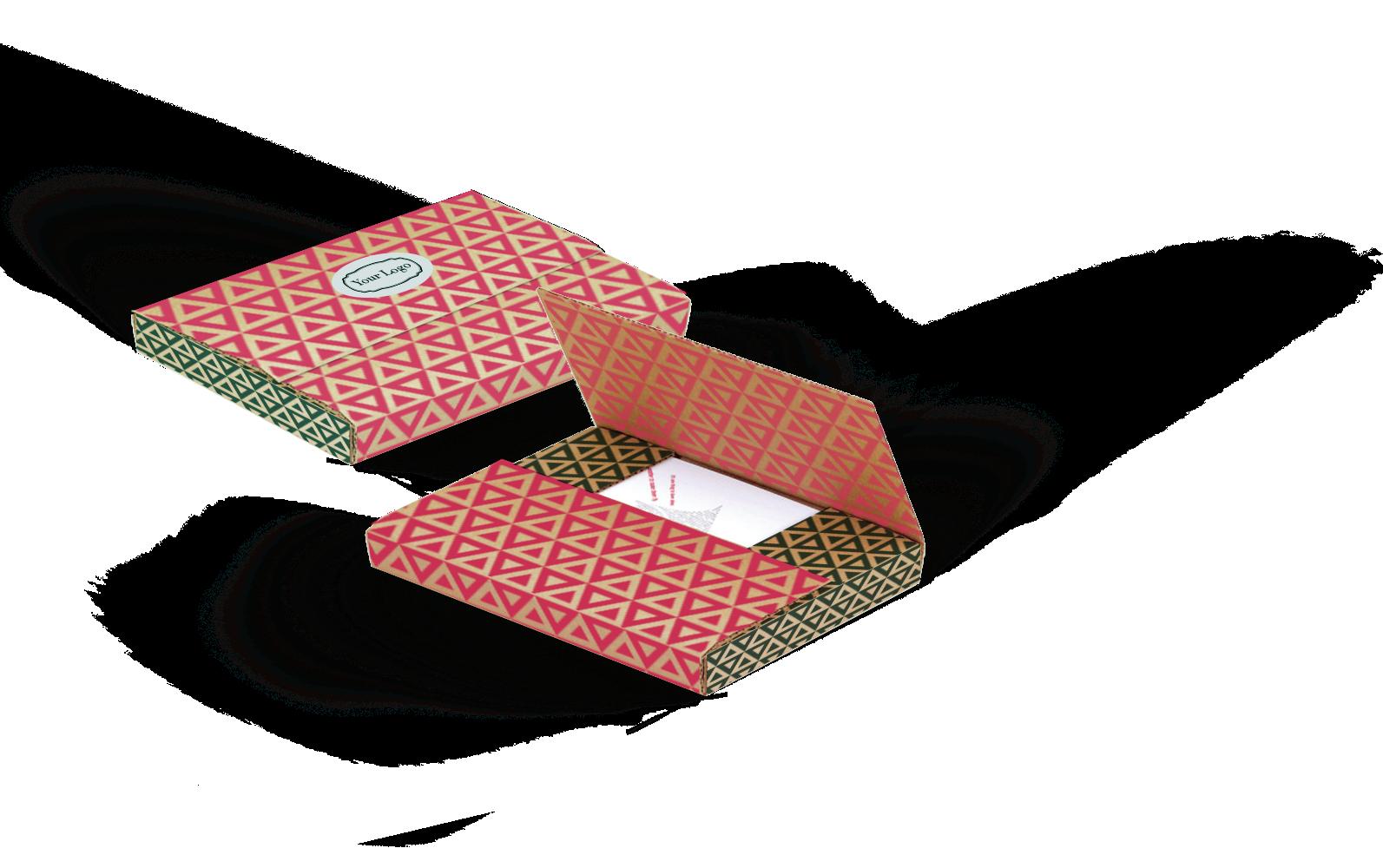 Where would you like your logo printed? You can choose to print your logo on just the top of the box or print it anywhere! The boxes are fully printable using full color CMYK digital printing.