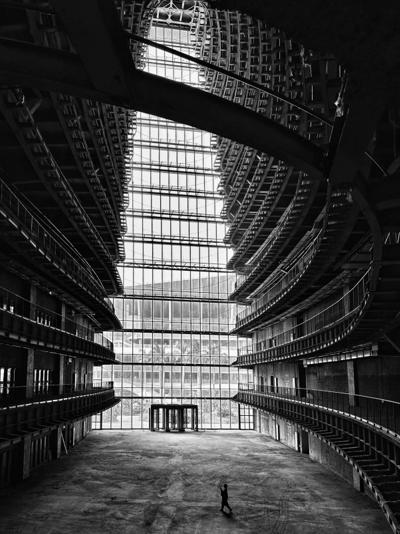 Finally, Wenlong Jiang of China was third, capturing the vastness and intricate structure of an indoor space. A lone figure provides a sense of scale and solitude within the grand environment in Fujian, China.
