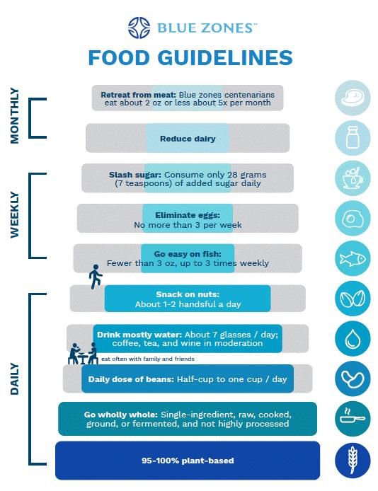 Social Eating and Meal Rituals: In addition to food choices, the Blue Zones Diet emphasizes the social aspect of eating and the importance of enjoying meals with family and friends. Sharing meals and engaging in mealtime rituals can enhance social connections, reduce stress, and promote overall well-being.