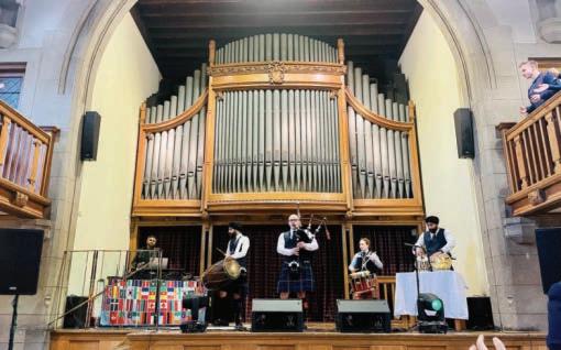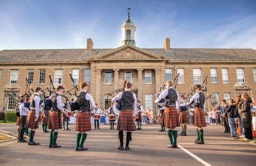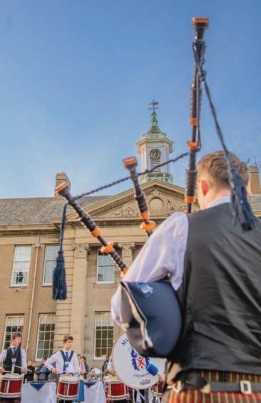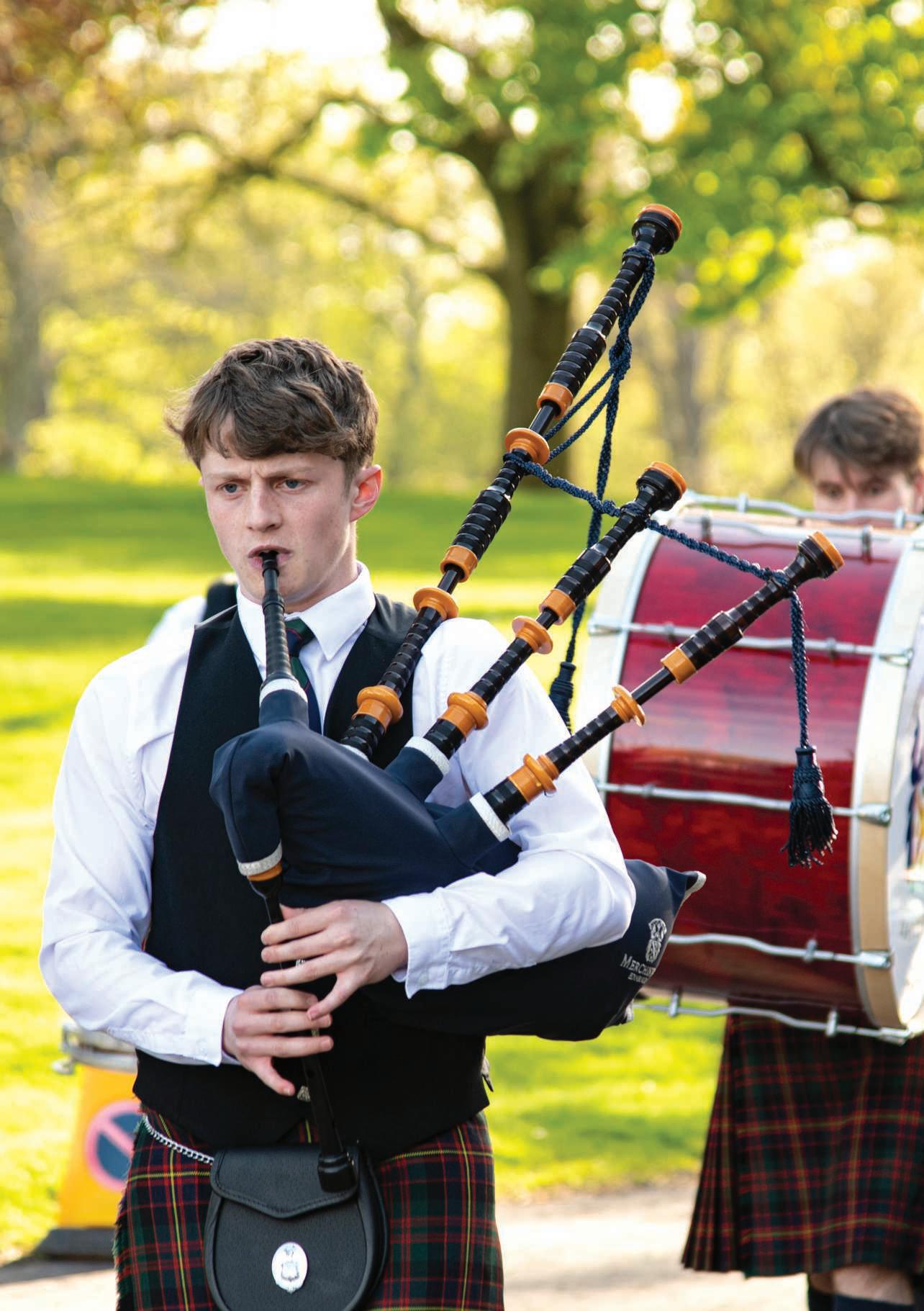individual piping pupils, has directed and led the School’s Pipe Bands, organised internal competitions and concerts, and taken the boys to compete in local and national competitions. In addition, under his direction, the Pipe Band has performed at innumerable Merchiston events, including the annual Burns Supper, at which it is always a major contributor. In recent years, he has played a vital role in Merchiston’s “Sounds Like Friday” initiative, working with pupils from local maintained sector schools, which, unfortunately, came to an end when Covid restrictions were imposed.
